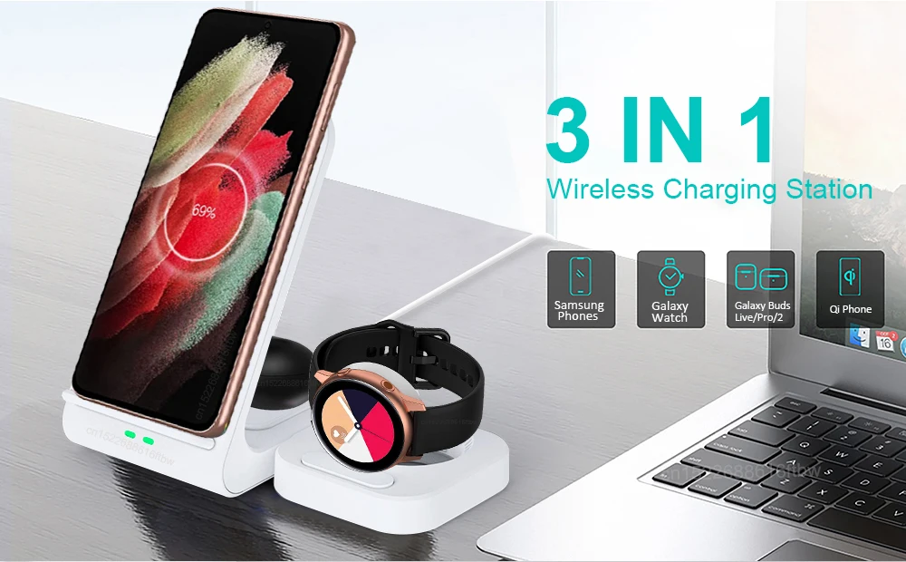 Отзывы о Беспроводное зарядное устройство 3 в 1 для Samsung Galaxy Watch 4 15 Вт QI док-станция быстрой