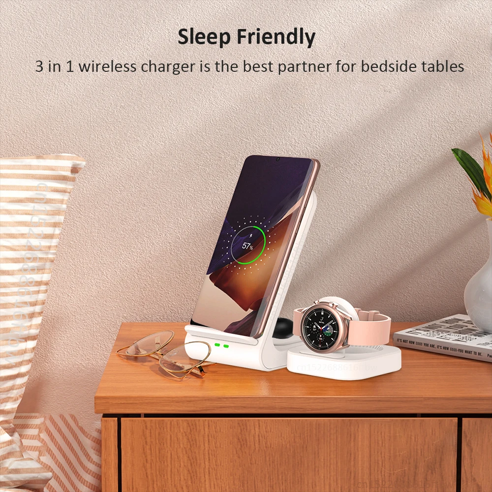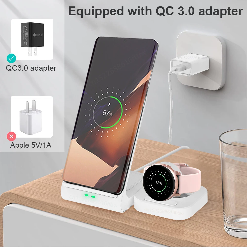 Беспроводная подставка для зарядного устройства 3 в 1 для Samsung Galaxy Watch 4 15 Вт быстрая зарядная док-станция для Samsung S21/Active 2