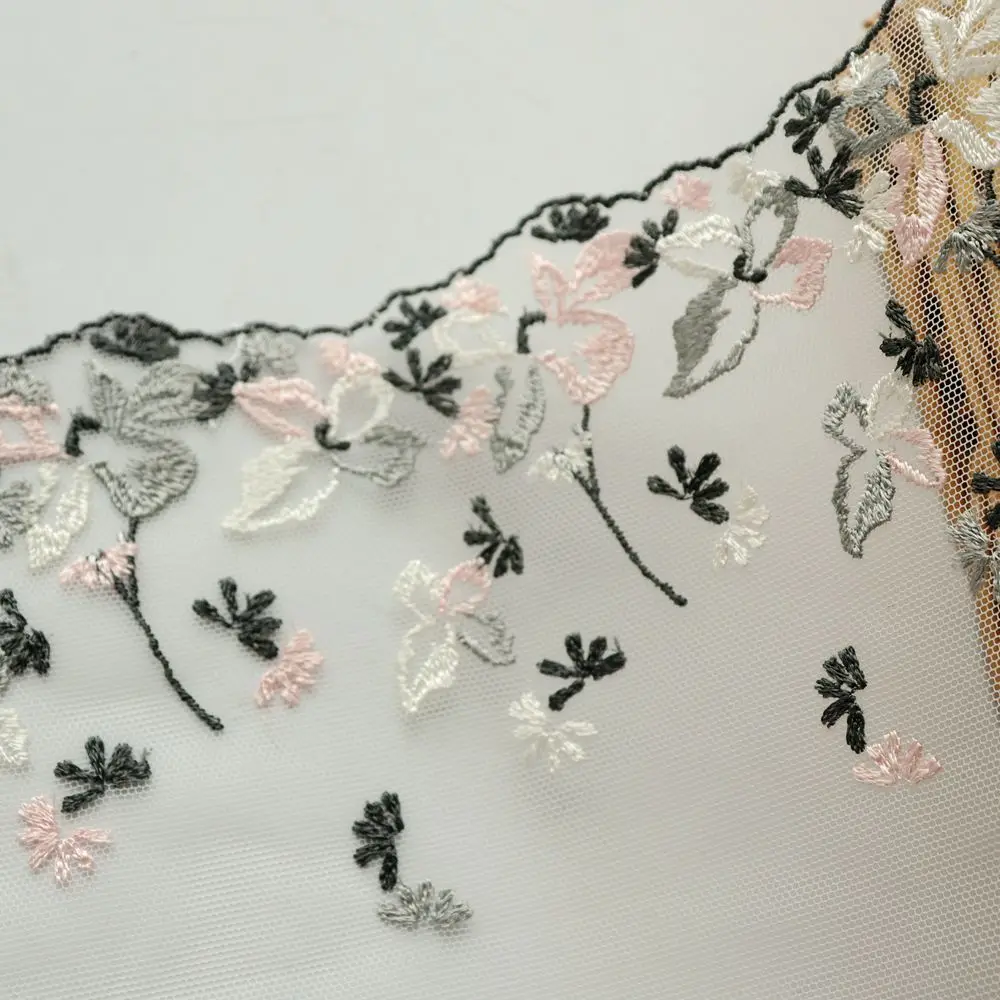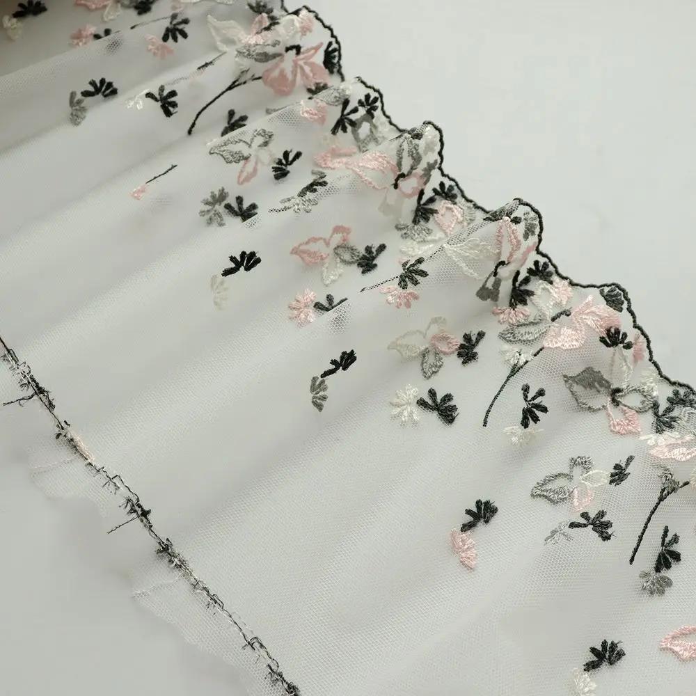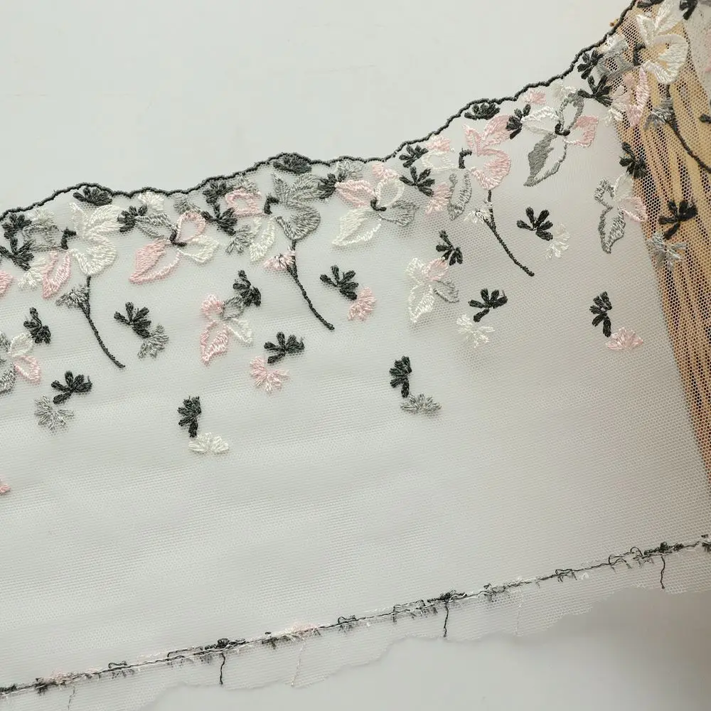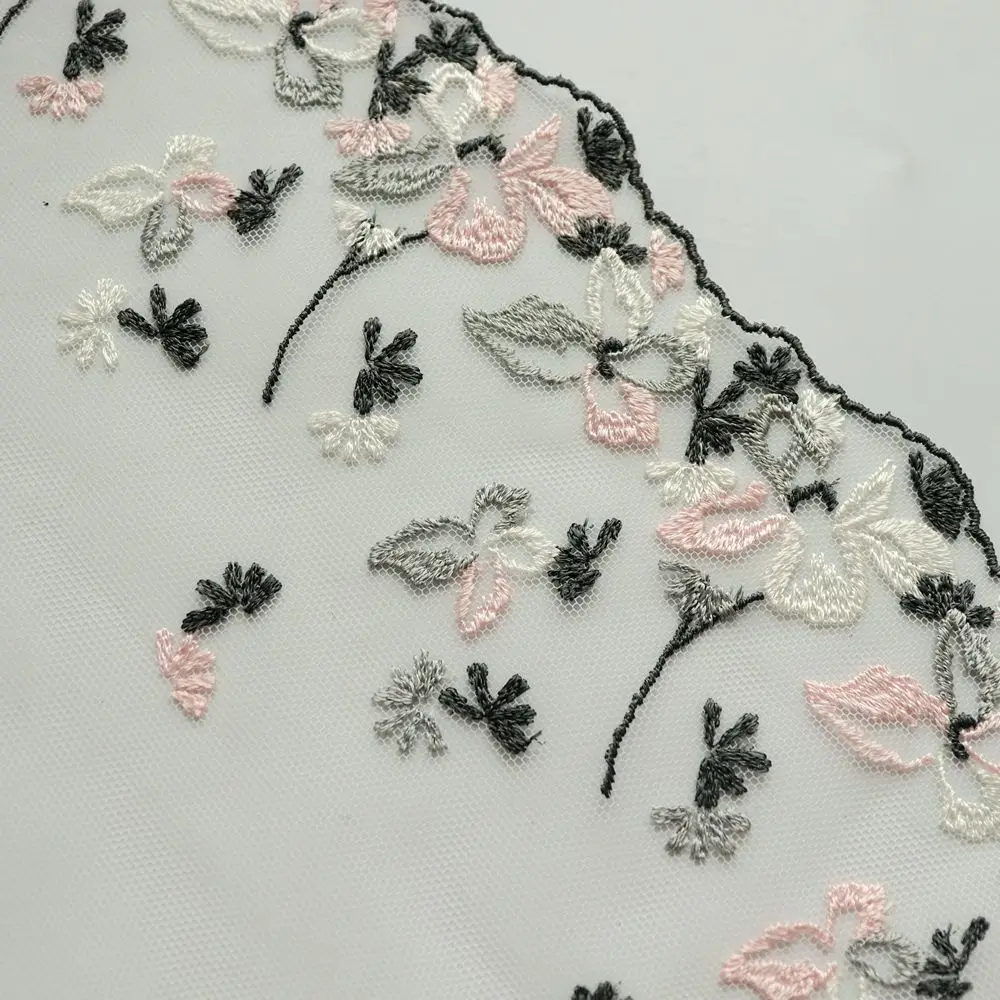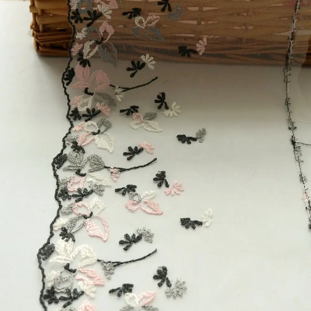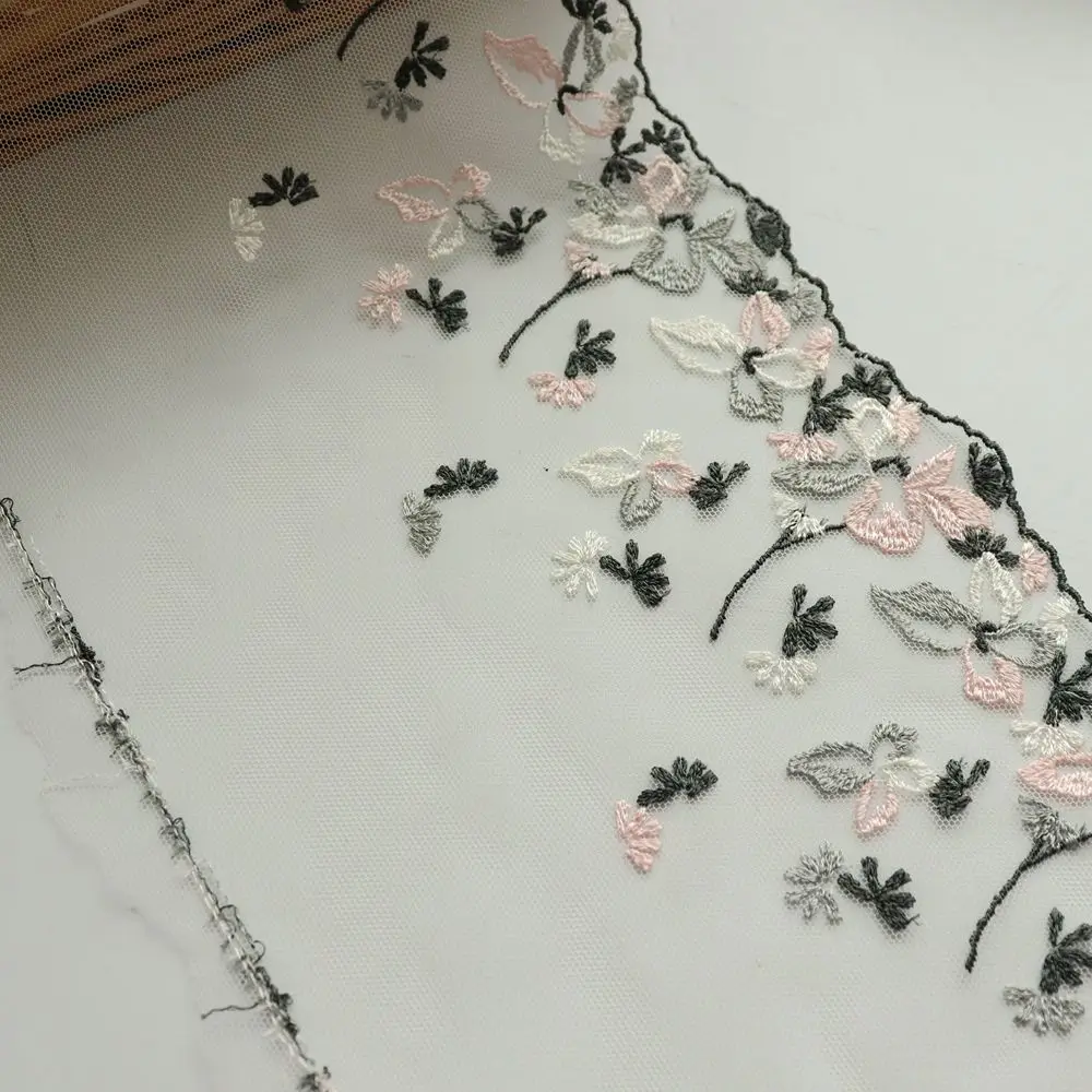 Красивые розовые и Серые цветы расшиты на белой сеткеКрасивый и дыханияИдеальные украшения для вашего платья, кукольного платья, ручной работы и т. Д.