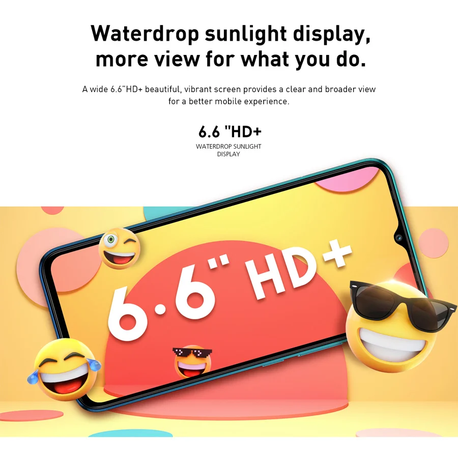 > 2. Экран: 6,6 ''HD + в виде капли воды, полный Экран Дисплей; 1600x720P HD;