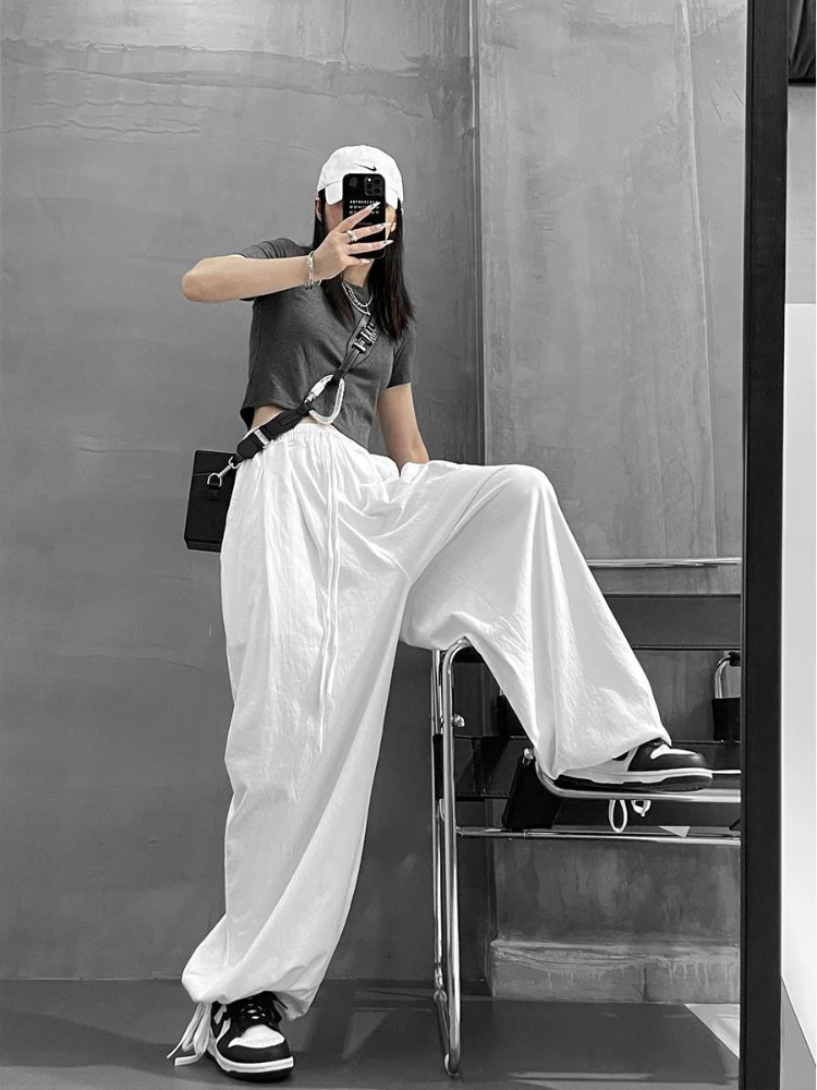 Отзывы о Тренировочные брюки QWEEK в стиле Харадзюку женские свободные белые спортивные