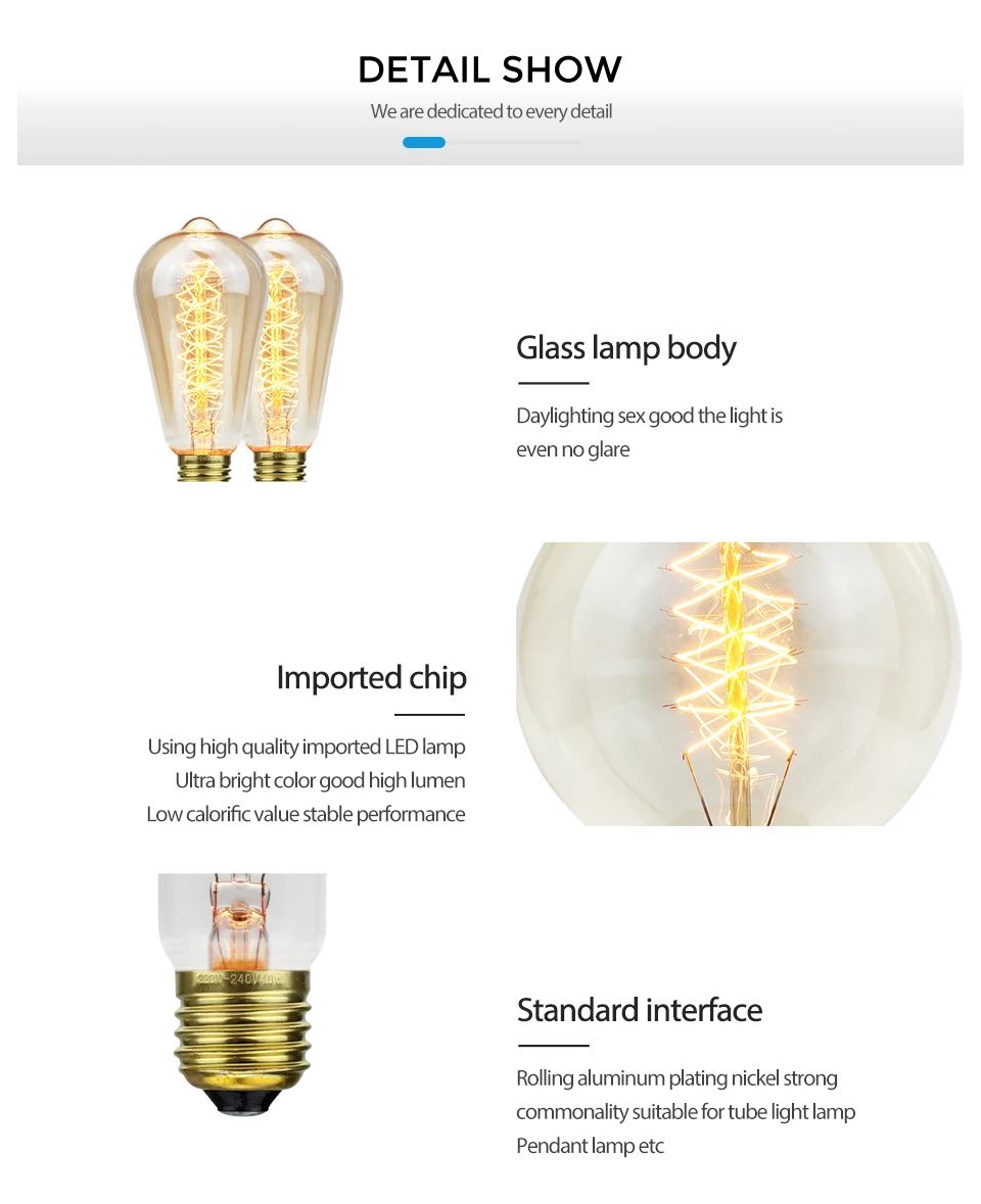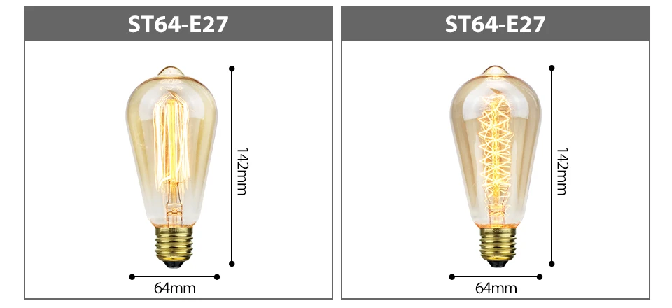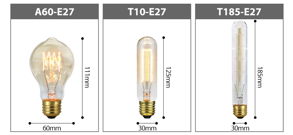 Ретро лампа Эдисона E27 40 Вт 220 В винтажная лампа T10 T45 A19 ST64 G80 G95 ампула лампа накаливания для домашнего декора лампадаОписание: