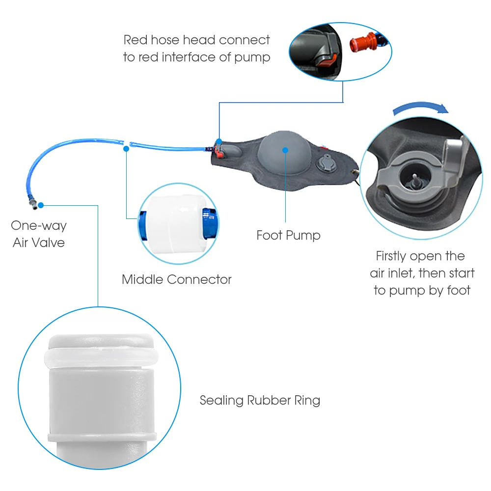 Ножной насос с воздушным клапаном, поможет вам легко надавить на мешок для душа. Односторонний воздухозаборник предотвращает возврат воды обратно.