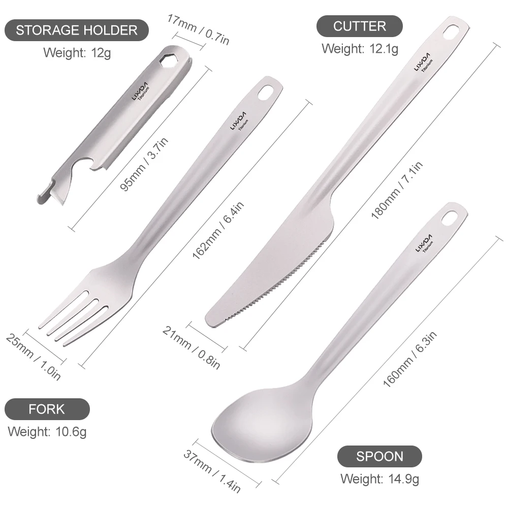 Отличный набор столовых приборов для дома, кемпинга, пеших прогулок, альпинизма, пикника и других видов активного отдыха.