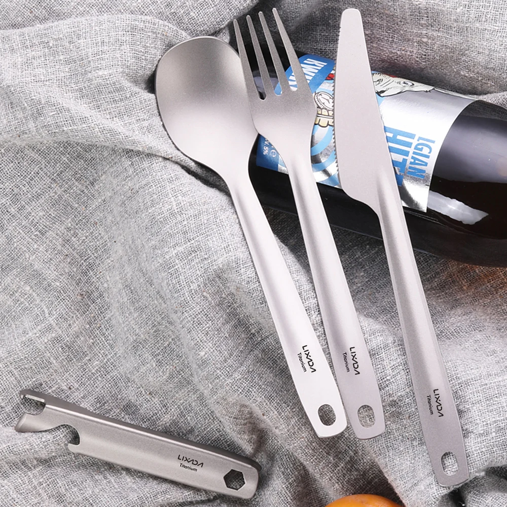 Отзывы о Набор столовых приборов Lixada 4 в 1 легкая столовая ложка вилка нож держатель для