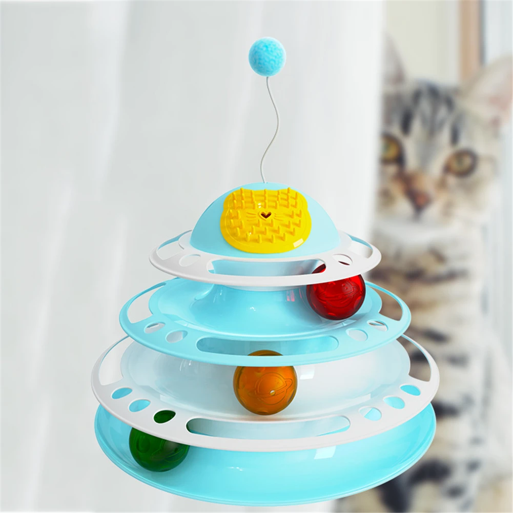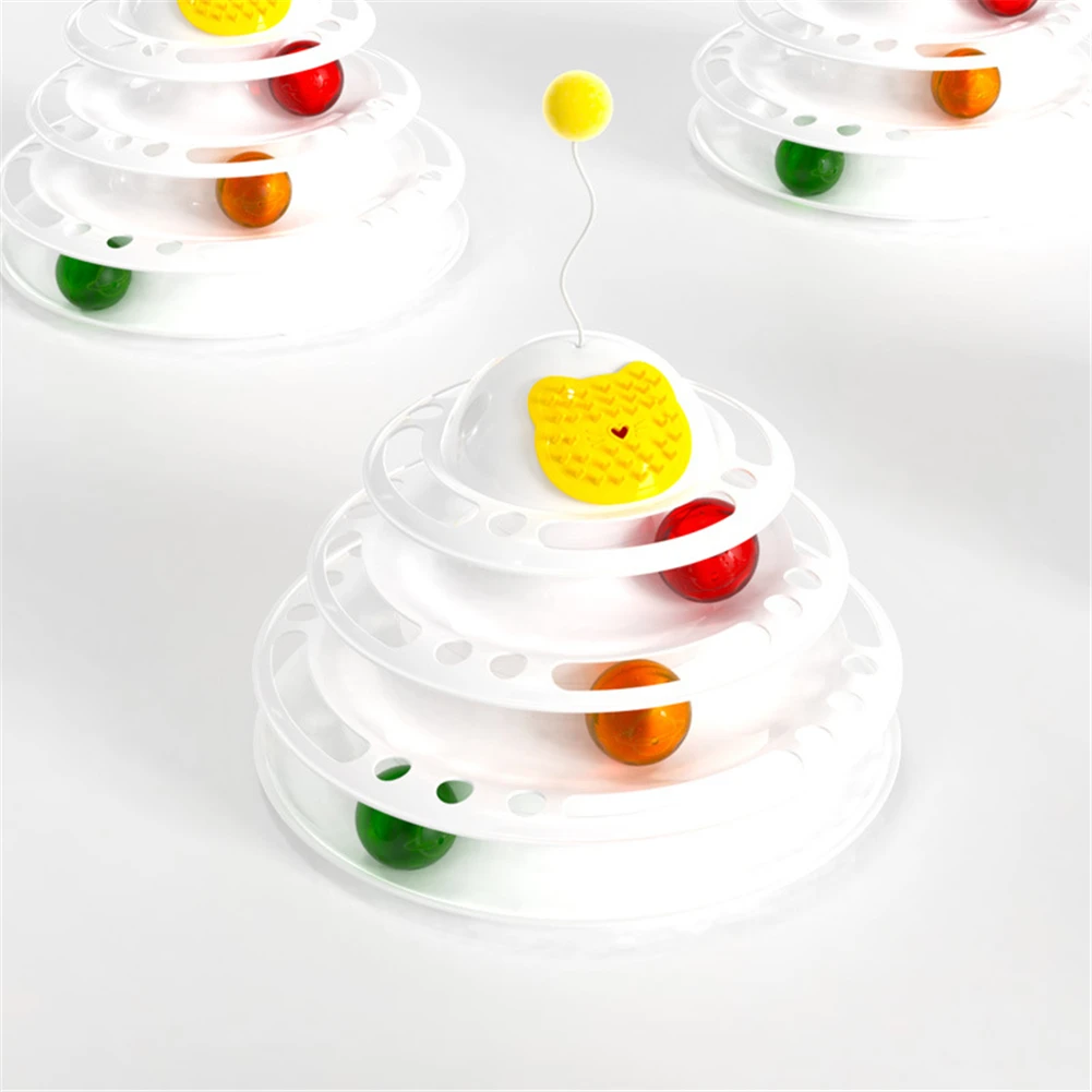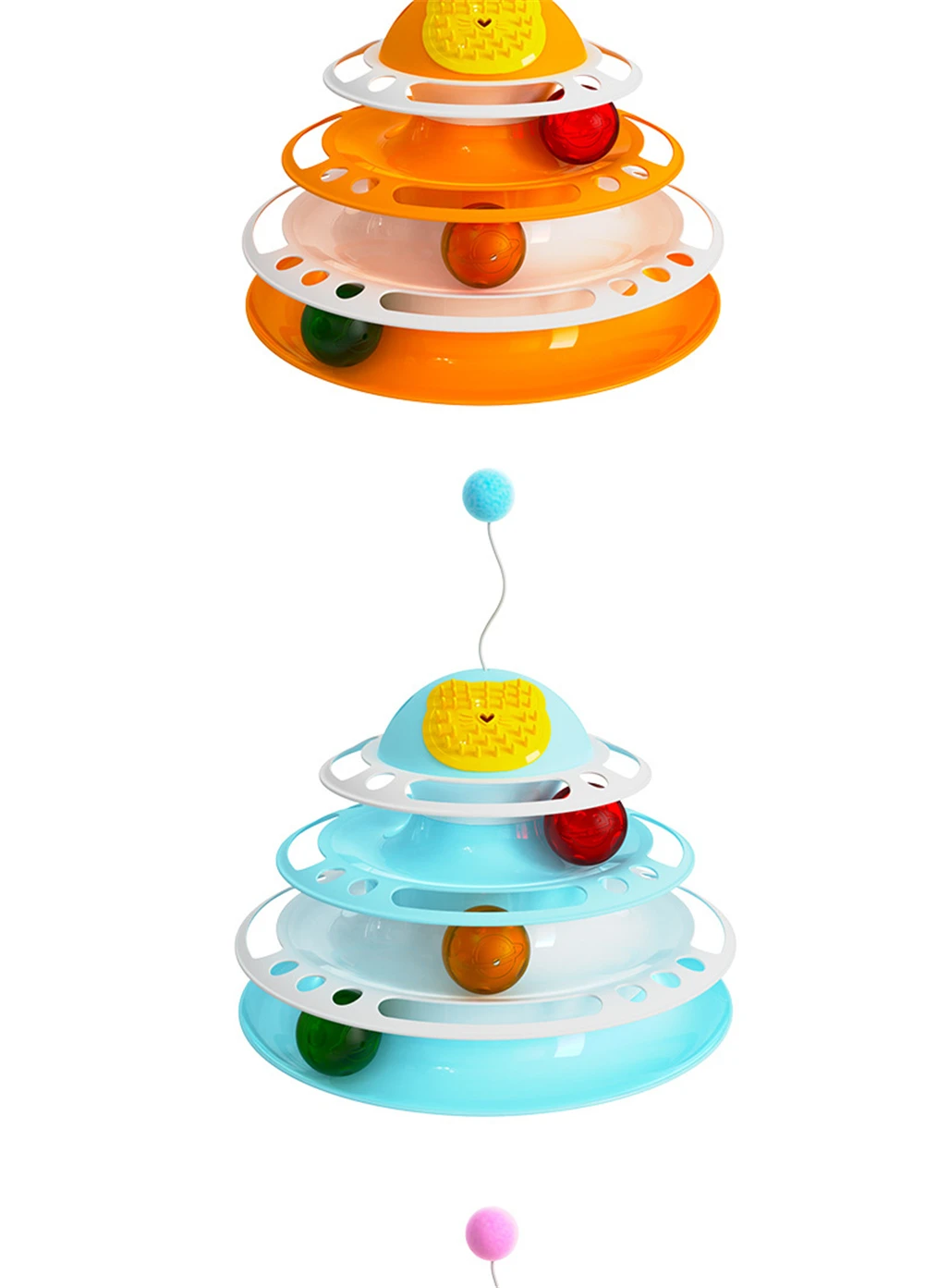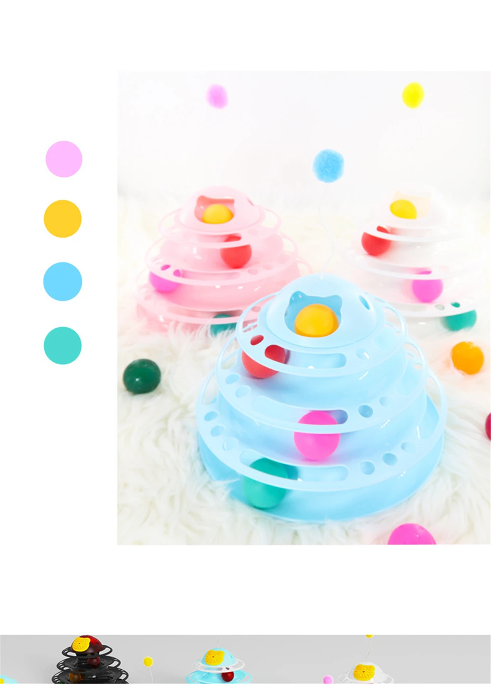 ❤4 уровня игрушки: игрушка для кошек состоит из 4 уровней и с 3 различными цветными шариками, которые расположены на уровне. Катающийся шарик обратит на себя внимание кошки.