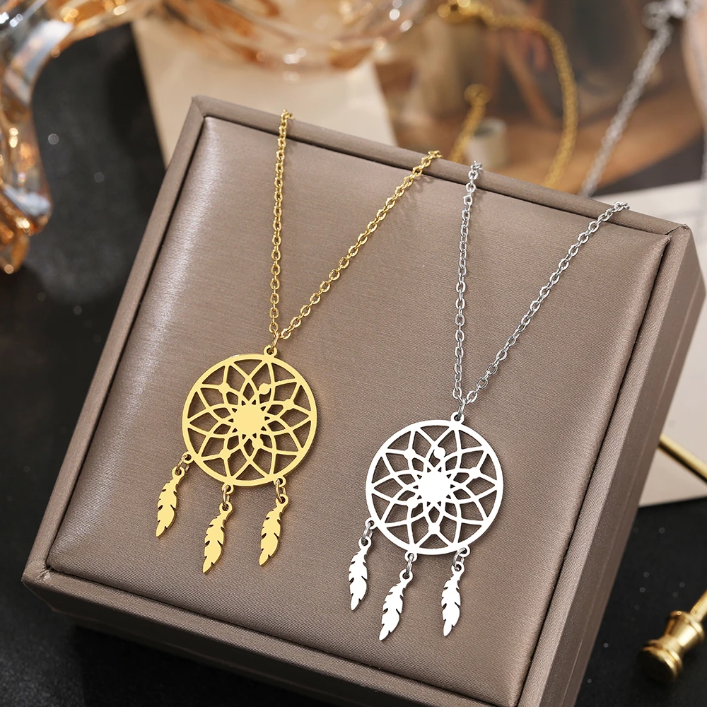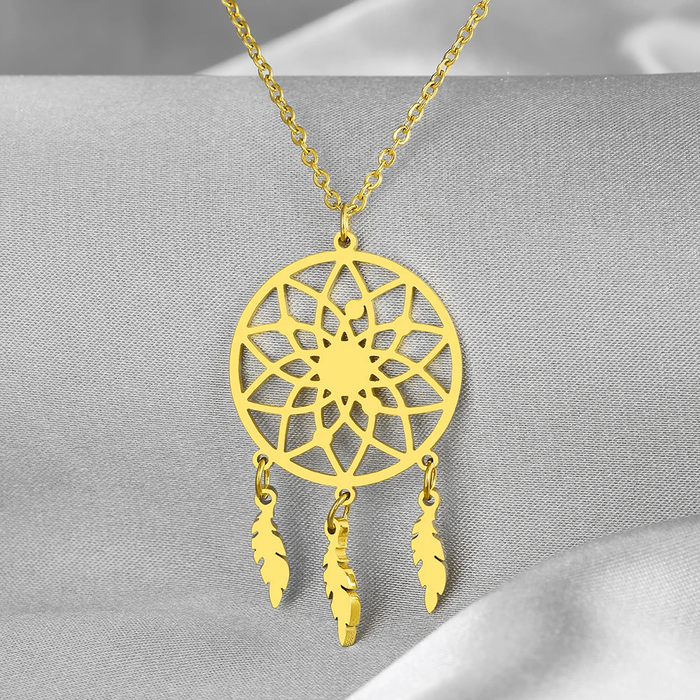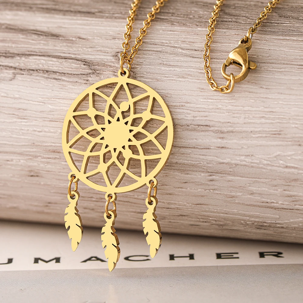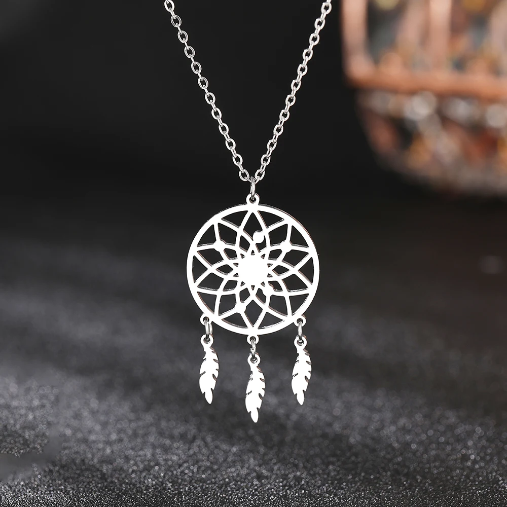 Отзывы о Ожерелья из нержавеющей стали подвеска в виде диска Ловец снов пера модное