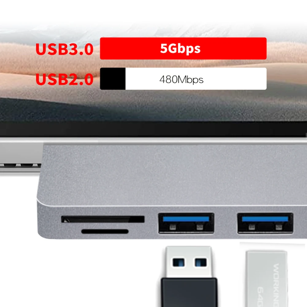Для Microsoft Surface Pro 8 7 6 5 4 Hub 5/6 в 1 USB док-станция с 4K HDMI-совместимый USB 3,0 слот для карт памяти