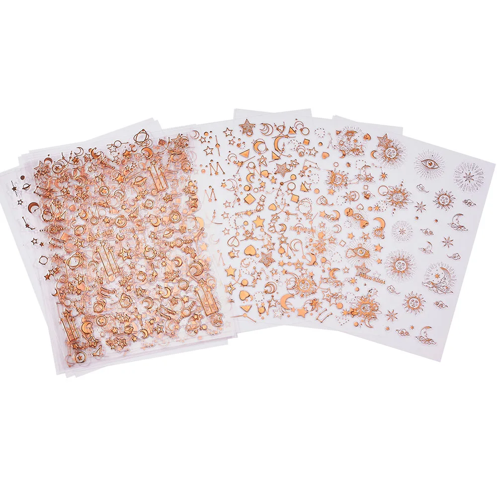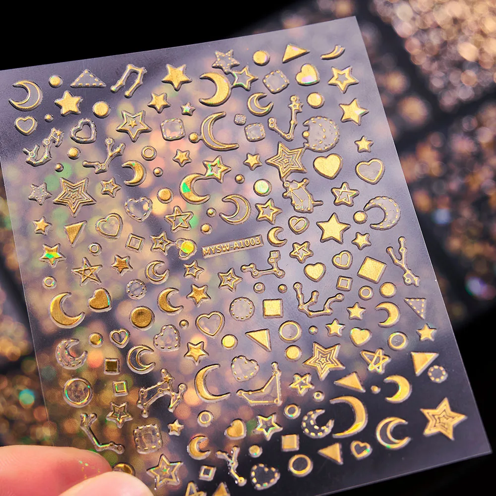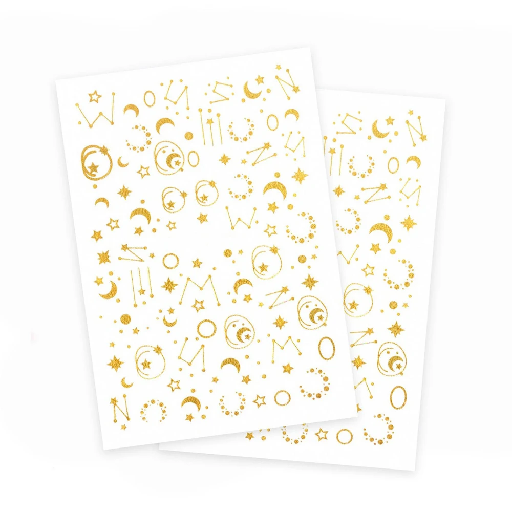 Золотистые женские Galaxy Nail Art Наклейки Созвездие «Метеор» с изображением луны и звезд, зодиака StripesSelf клей