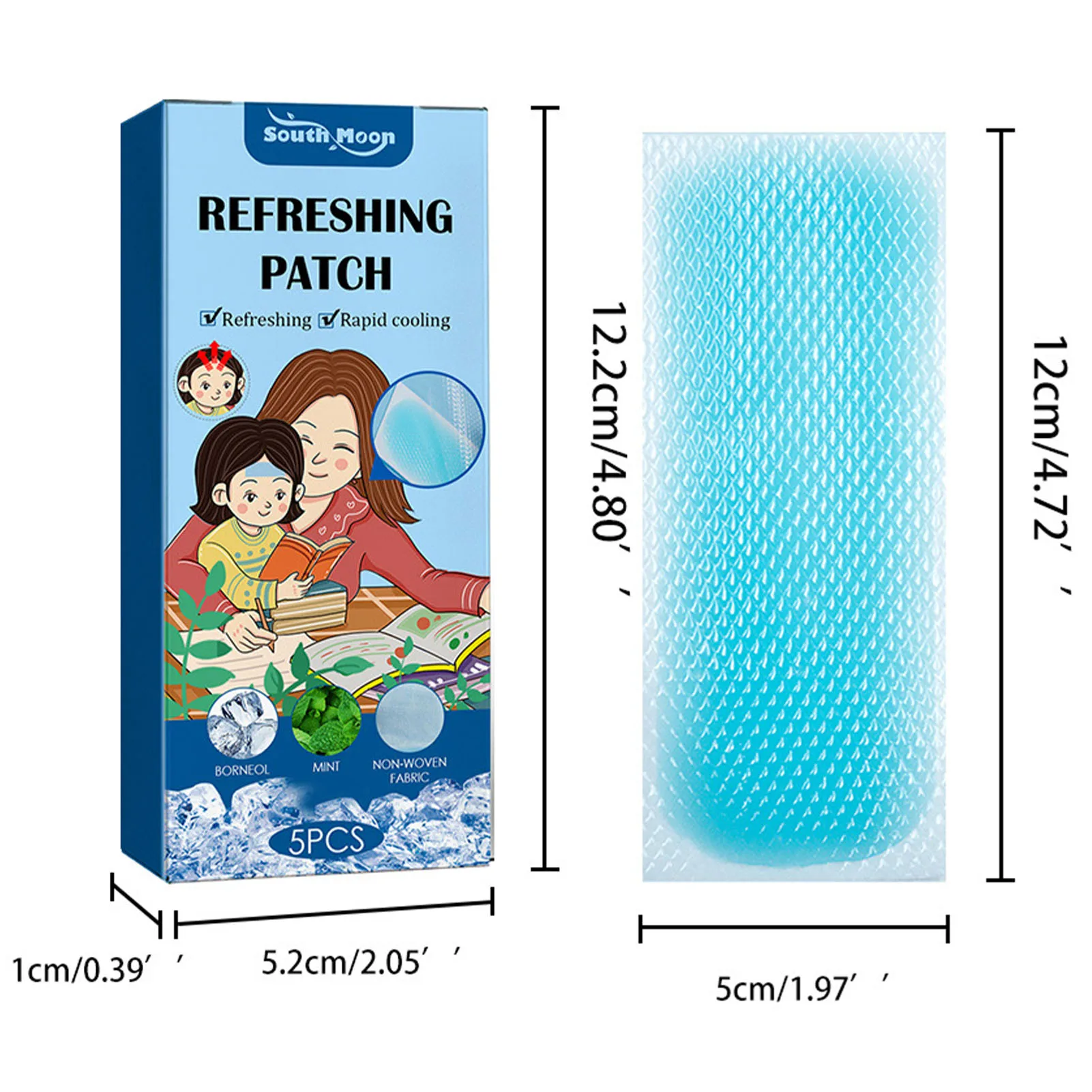 1. Оторвите прозрачную пленку и Наклейте синюю клейкую поверхность на лоб, шею, виски или другие части, которые требуют освежения и охлаждения. Можно отрезать по размеру по мере необходимости.