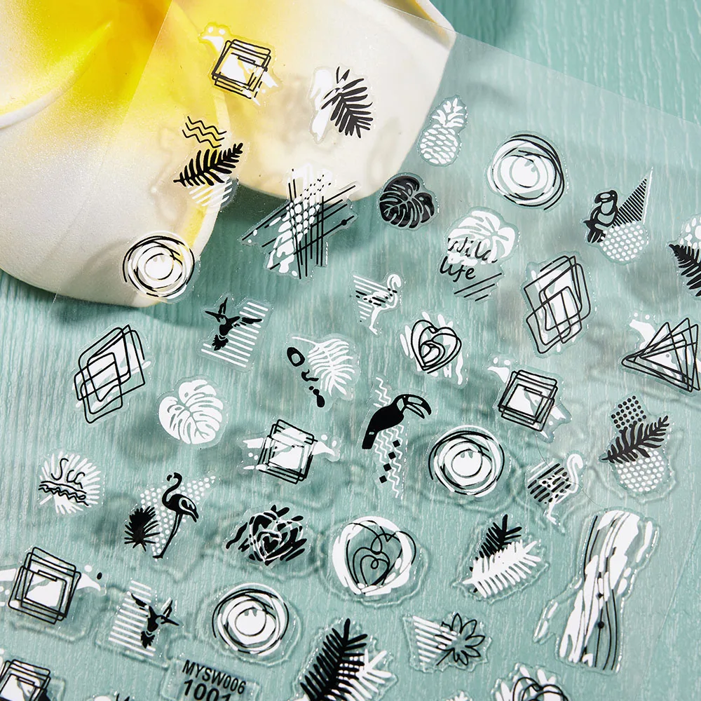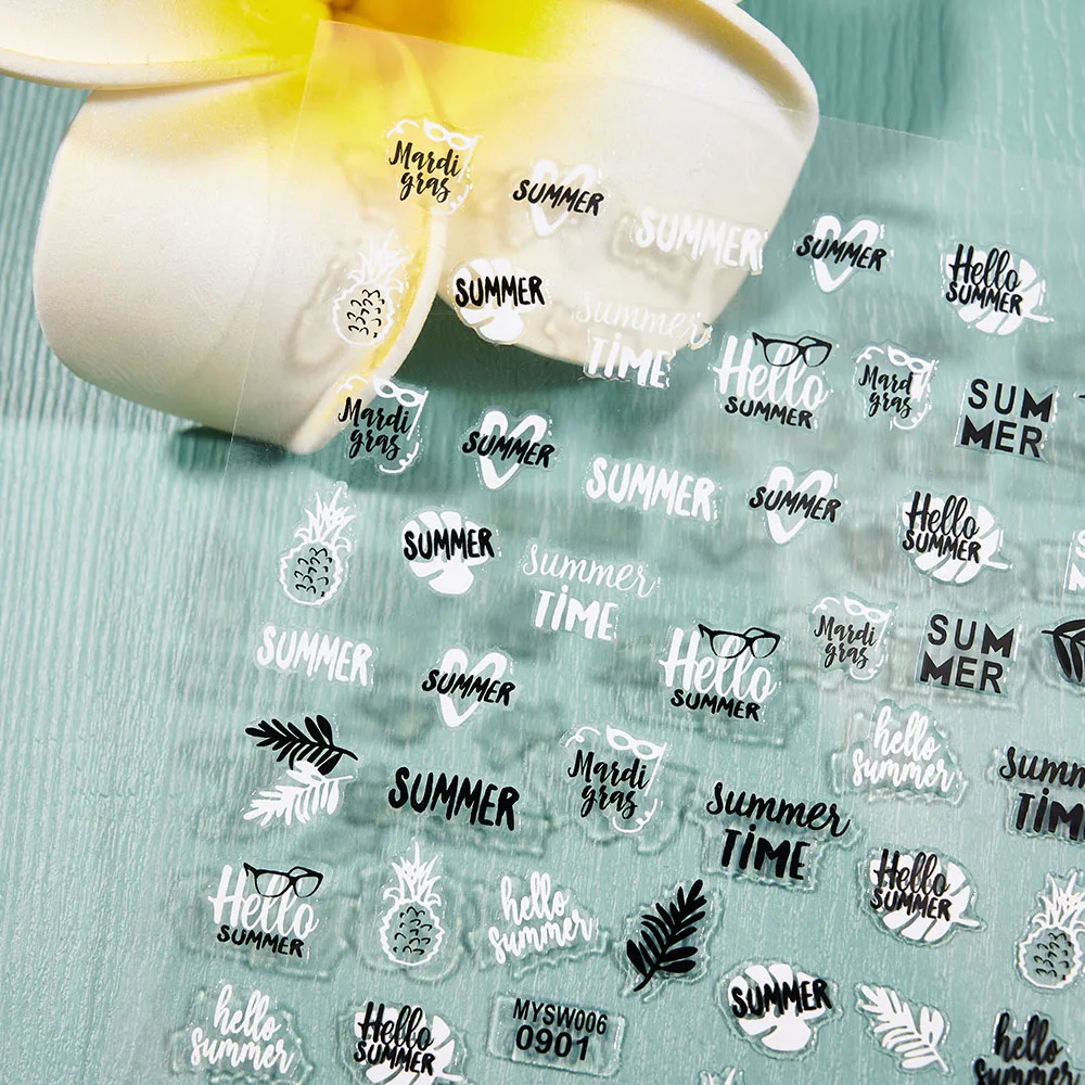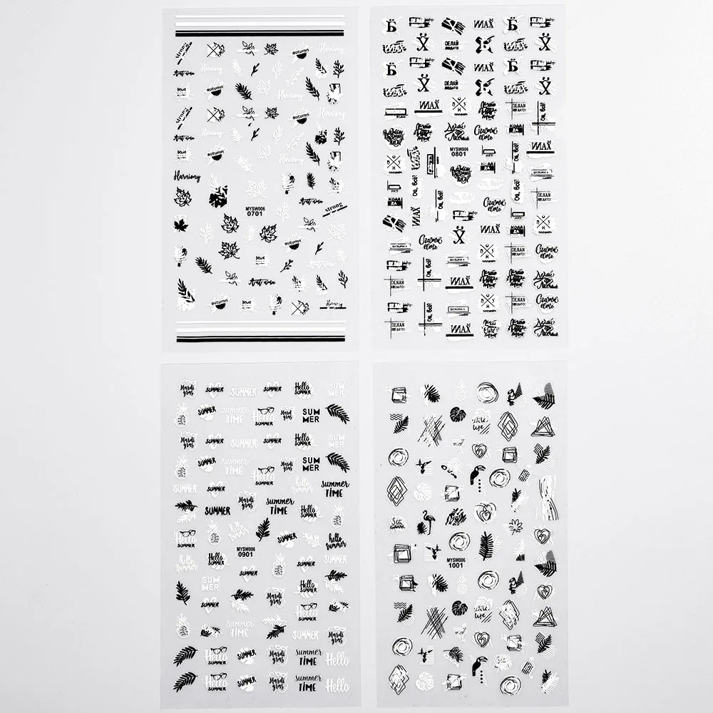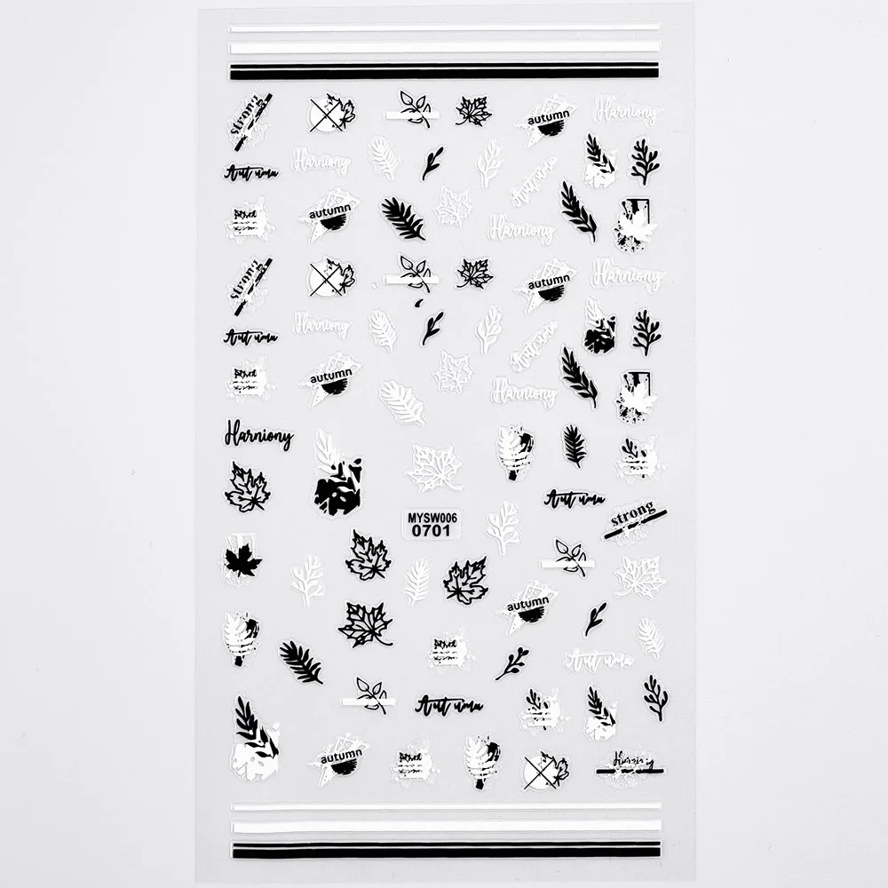 Отзывы о 10 листов/набор кленовый лист наклейки для ногтей черный и белый английские слова