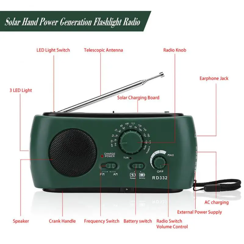 Многофункциональный ручной радио Солнечный Кривошип Динамо мощность ed AM/FM/NOAA погода радио использовать аварийный светодиодный фонарик Power Bank