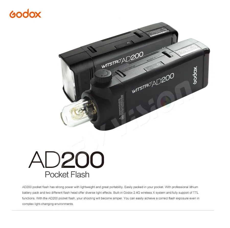 GODOX AD200 TTL 2,4G Вспышка для фотокамер Speedlite HSS 1/8000 сек карманная вспышка светильник с двумя головками 200Ws с 2900 мА/ч, литий Батарея вспышка светильник вспышки светильник ning