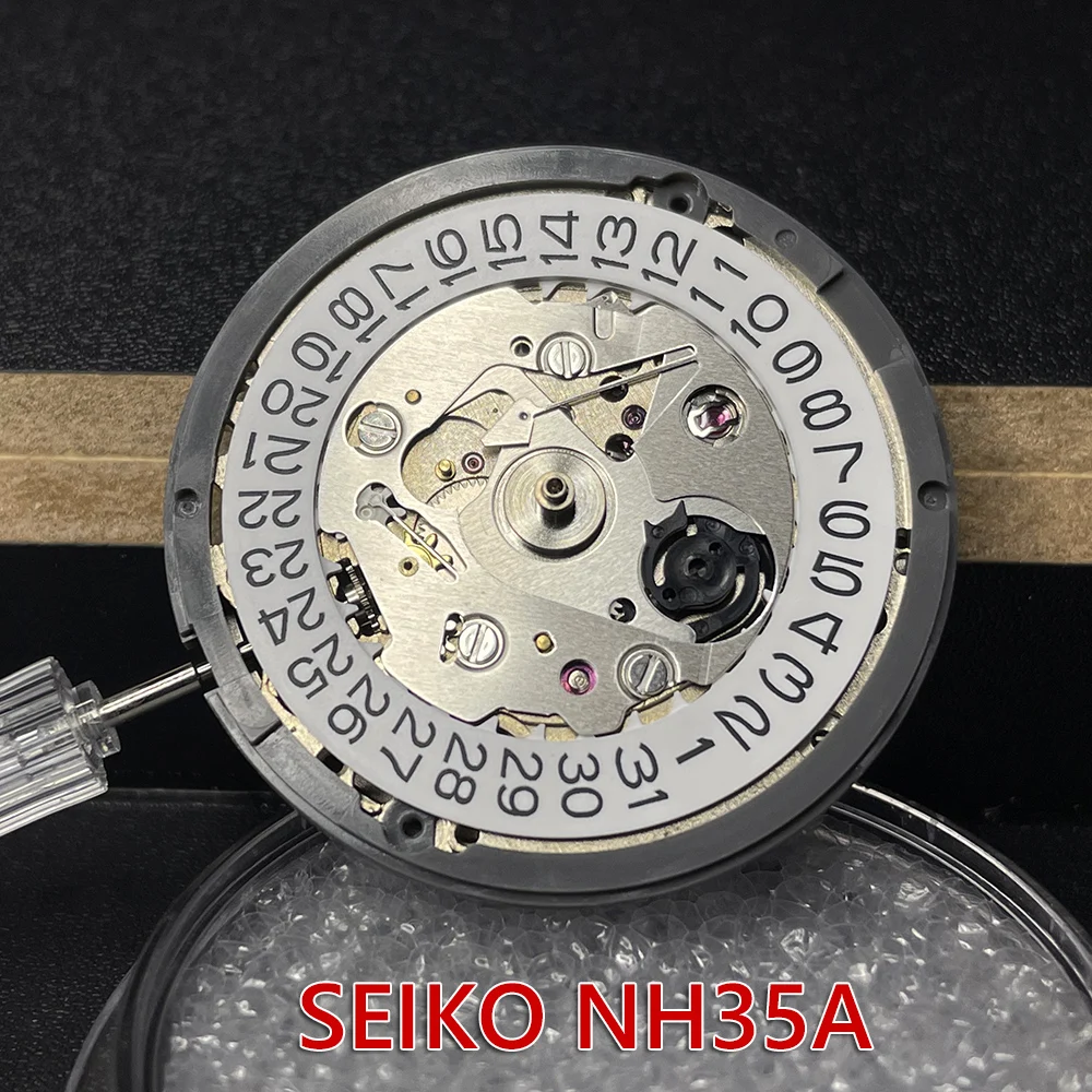 Япония NH35 Оригинальный автоматический механический механизм 24 Драгоценности NH36A/NH35A Дата в 3,0 часов Белое колесо данных Отрегулированная точность