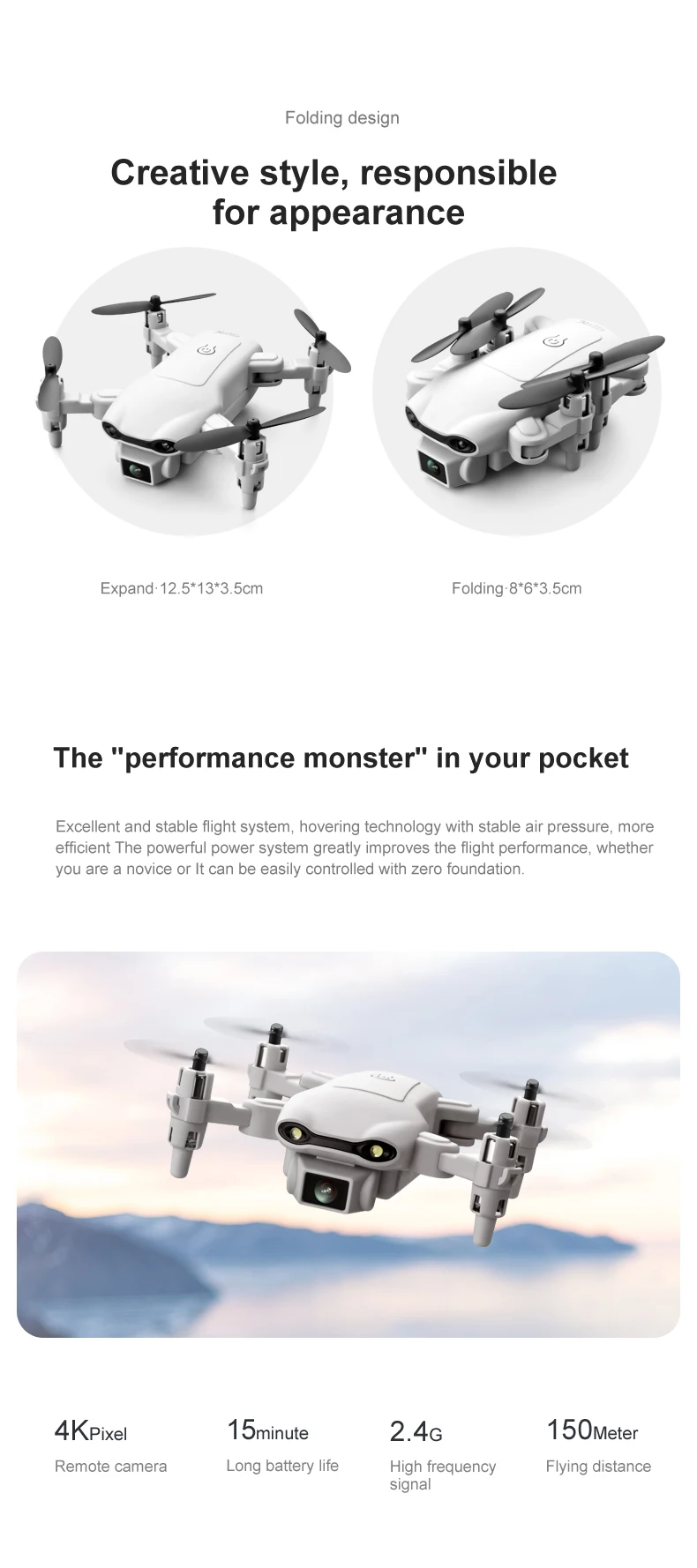 -Встроенная камера pixel 30 Вт/500 Вт pixel /4K pixelHD. Удивительно, но он может снимать Потрясающие фотографии и видео с неба.