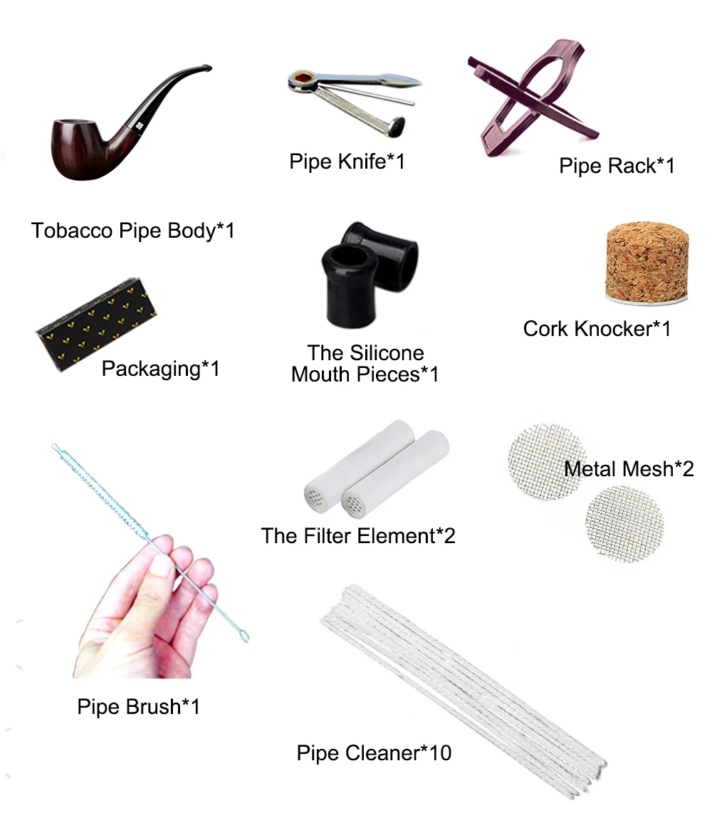MUXIANG деревянная табачная трубка ручной работы с 9 мм фильтром из активированного угля, изогнутая акриловая трубка для мундштук, бесплатная доставка, 10 инструментов для курения, набор aa0019s