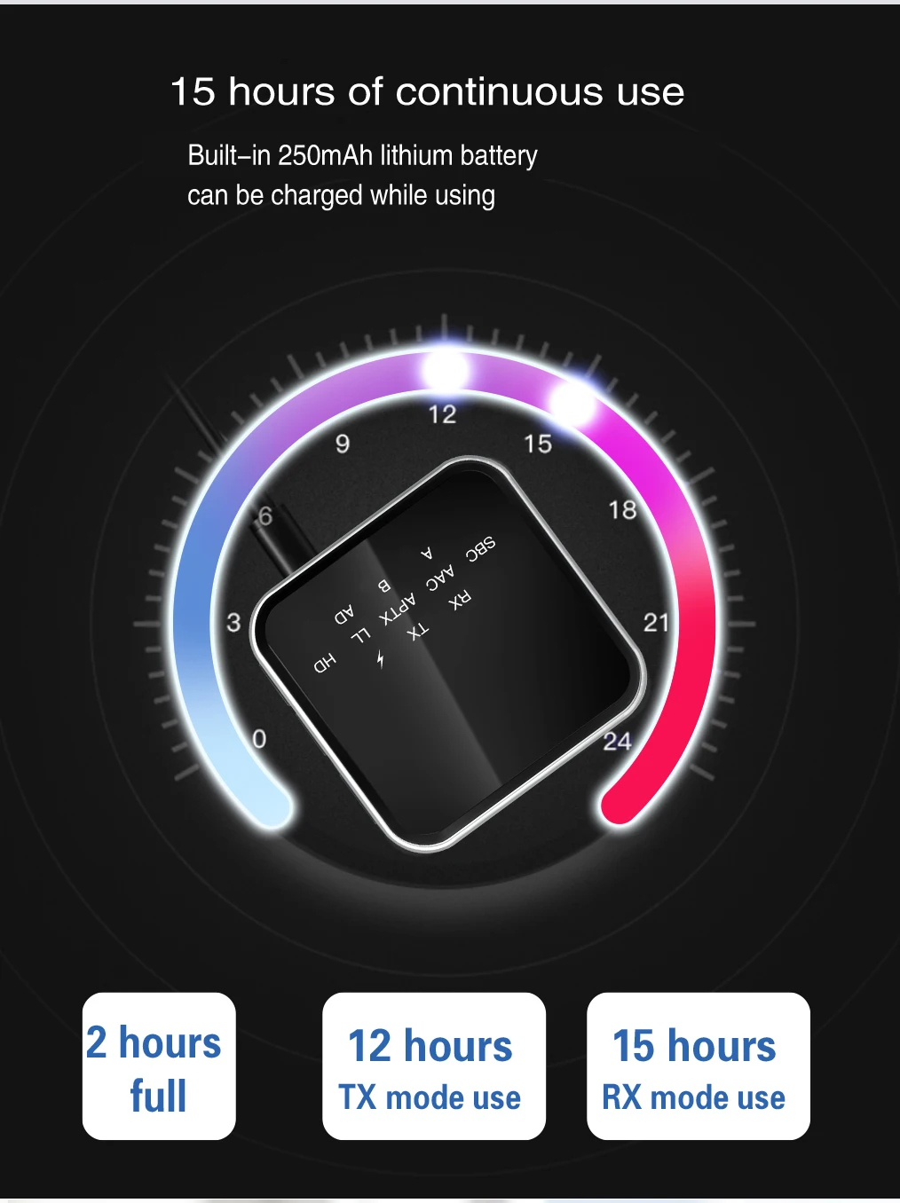 Срок службы батареи: RX>20H, TX>12H