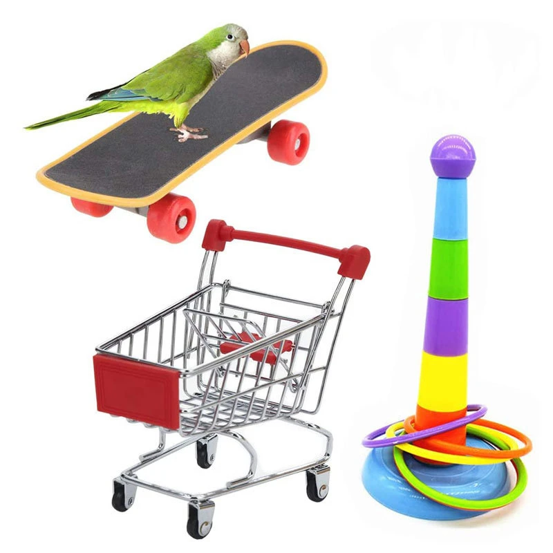 5 шт.: 1 x корзина для покупок с птицами, 1 x игрушка с кольцом для укладки птиц, 1 x скейтборд с птицами, 2 x игрушки для птиц, маленькие шарики с колокольчиками