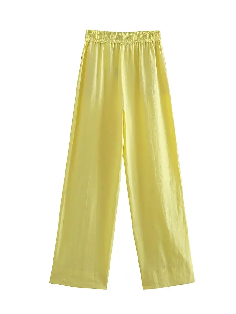 Отзывы о YENKYE 2022 Fashion Women Linen Wide Leg Suit Pants Vintage Elastic High Waist Loose Casual Trousers Office Ladie Pantalon - купить по