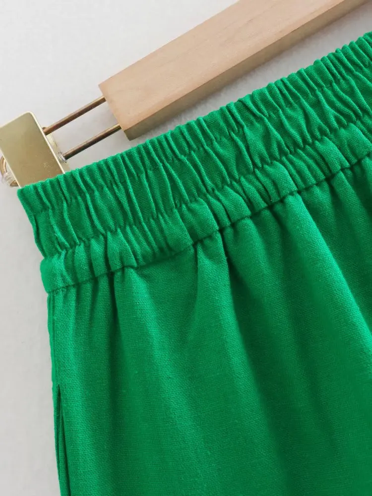 2022 Модный женский льняной костюм с широкими штанинами, винтажные Свободные повседневные штаны с эластичной высокой талией