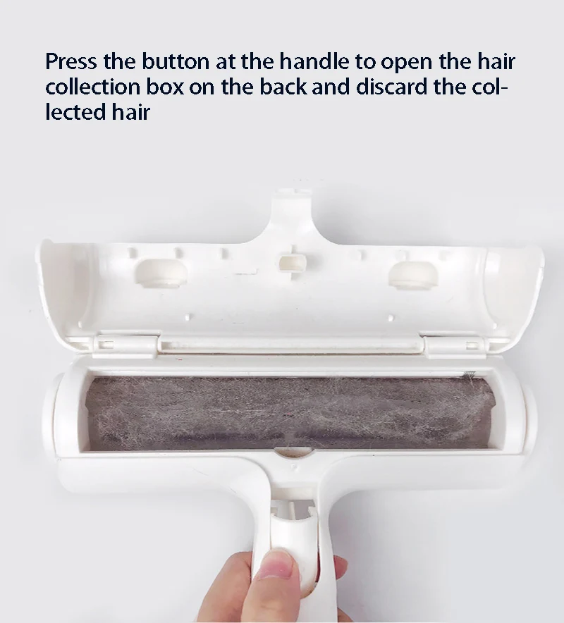 Нажмите кнопку на ручке, чтобы открыть коробку для сбора волос на спине и отбросить собранные волосы