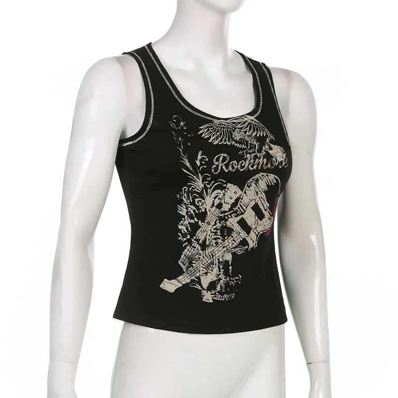 Отзывы о Топ женский летний облегающий с принтом без рукавов в готическом стиле - купить