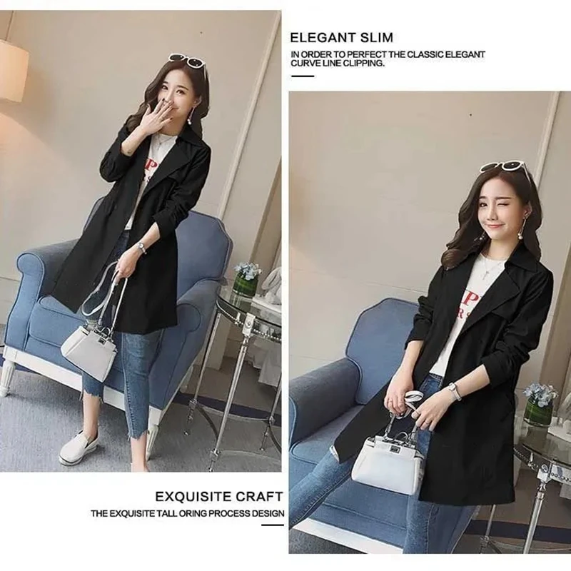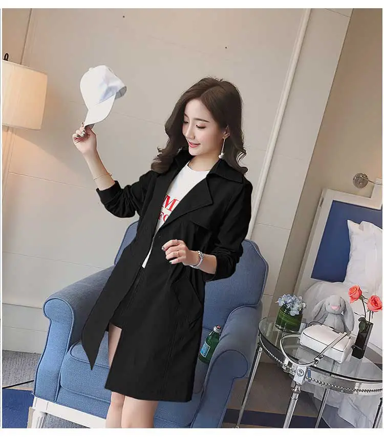 Весенний черный тонкий Тренч цвета хаки, женская верхняя одежда в Корейском стиле, двубортная куртка средней длины, элегантная ветровка для женщин