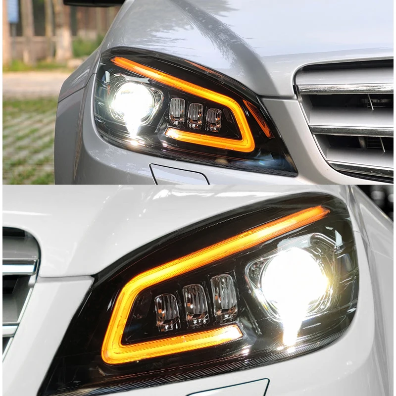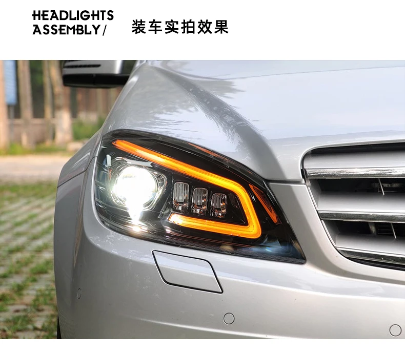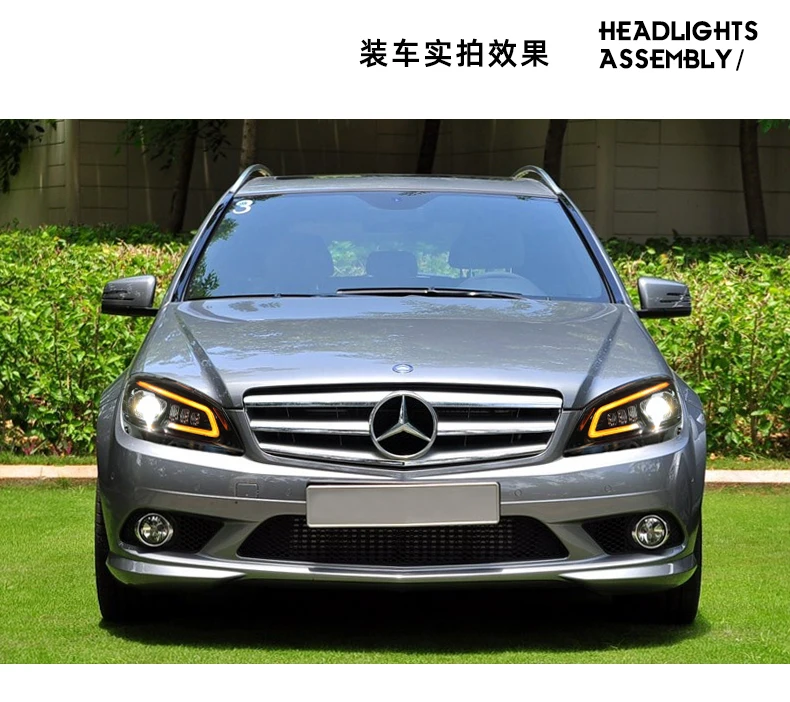 Отзывы о Для Benz W204 светодиодный ные фары 2008-2011 c200 c260 c300 головная лампа DRL сигнал поворота