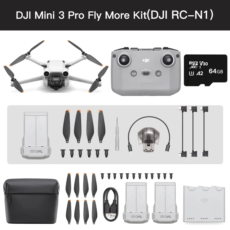 DJI Mini 3 Pro совместим с usb-зарядным устройством DJI 18 Вт и RC-N1 DJI и сопутствующими аксессуарами (DJI RC-N1 RC кабель, DJI RC-N1 пульт дистанционного управления ler Monitor Hood, держатель планшета DJI RC-N1 с дистанционным управлением, и пульт дистанционного управления DJI RC-N1). Другие аксессуары DJI Mini 2 не совместимы с DJI Mini 3 Pro.