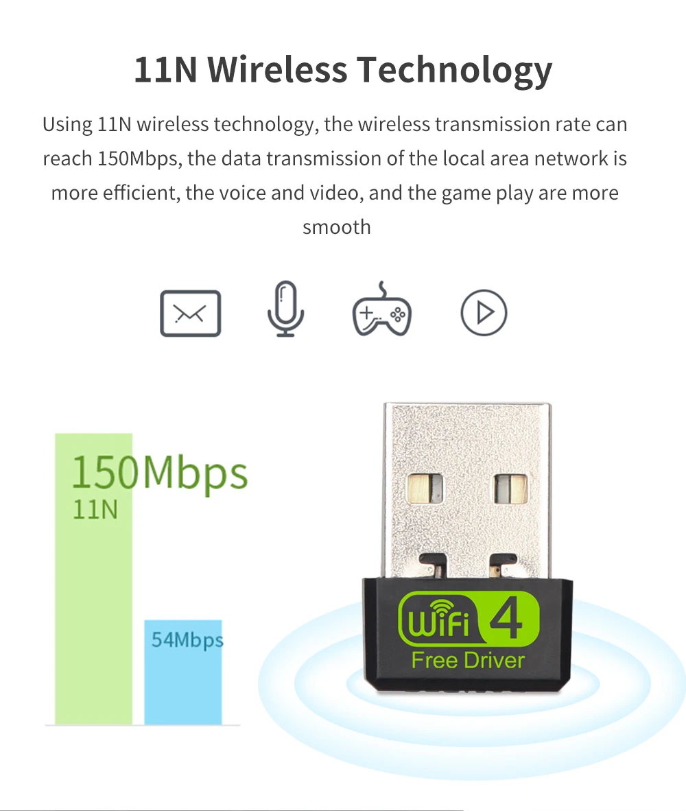 TISHRIC 150Mbps Mini External Wi-fi Adapter Drive Free 802.11N USB2.0 USB Wifi Adapter Wireless Network Card For Desktop Laptop