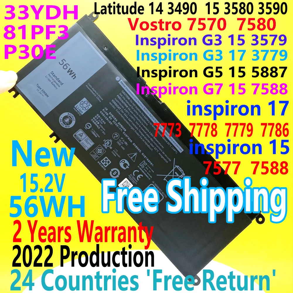 Отзывы о Аккумулятор 33YDH 56WH для ноутбука Dell Inspiron 17 7773 7778 7779 7786 15 7588 Vostro 7577 7570 Latitude 13 3380 14 3490 3580