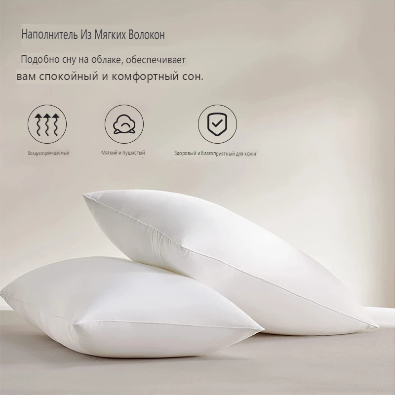 Super Comfy Pillow: подушки имеют хлопковое покрытие плотностью 233 нити. 100% хлопковая ткань обеспечивает превосходный комфорт для кожи и воздухопроницаемость, не перегреваясь и не потея всю ночь.