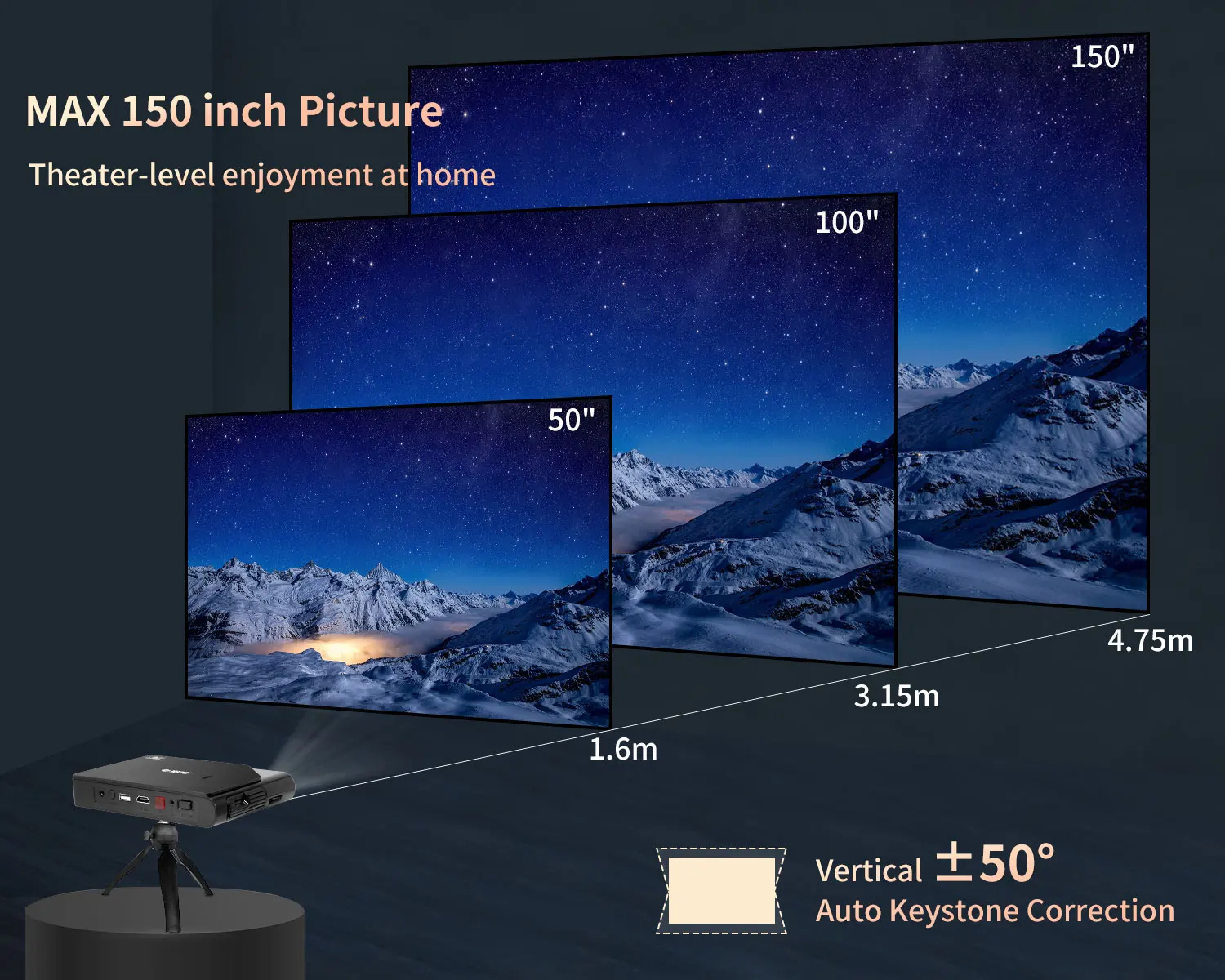 Проекционное отношение: 1,2: 1, Макс 150 дюймов.