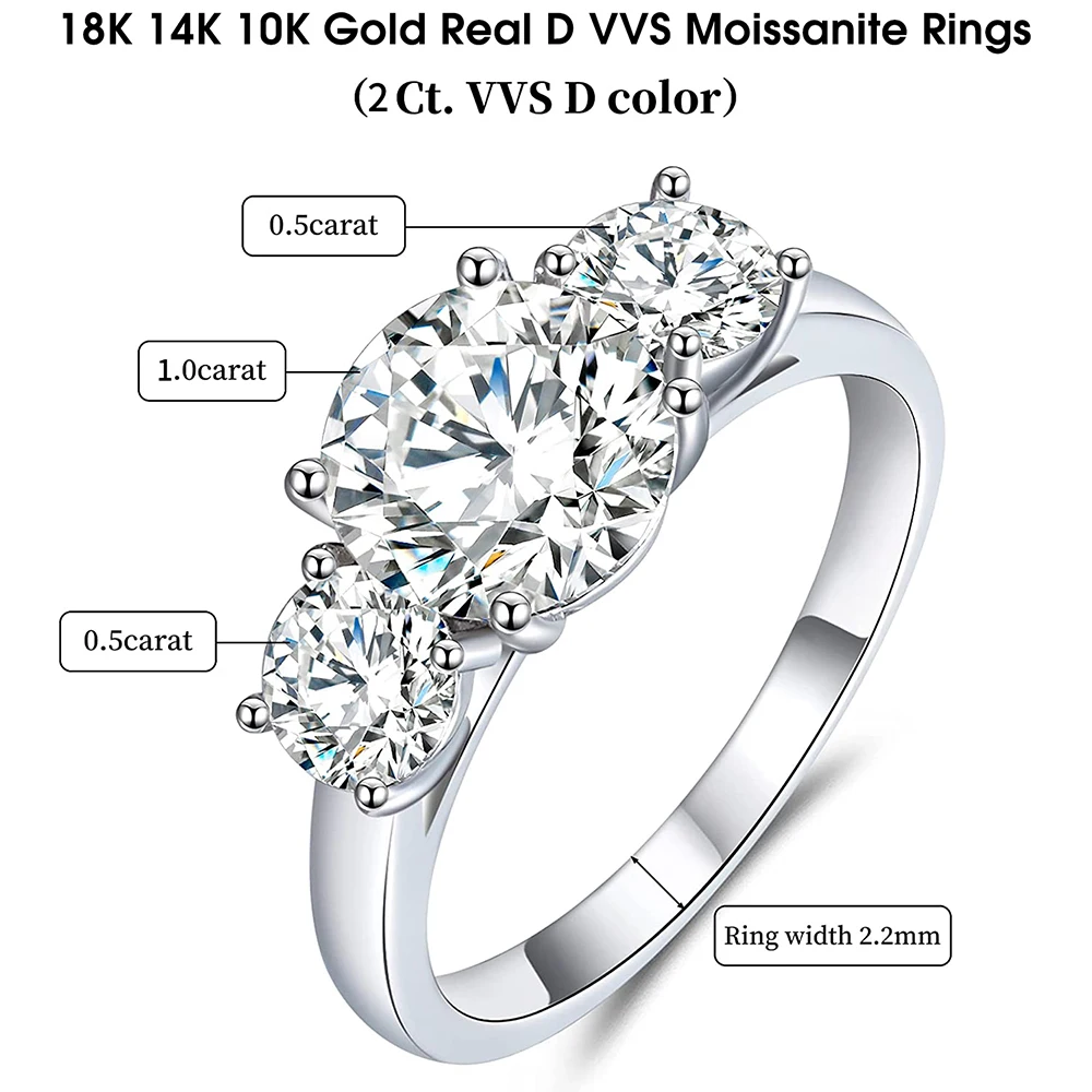 Муассанит Обручальные кольца для женщин, 2ct Три Камень Муассанит кольцо Swarovski 10К/14K/18K или серебряные кольца с муассанитом, D, Цвет VVS1 четкость Юбилейная Свадьба Помолвка кольца для предложение обещание кольцо для нее.