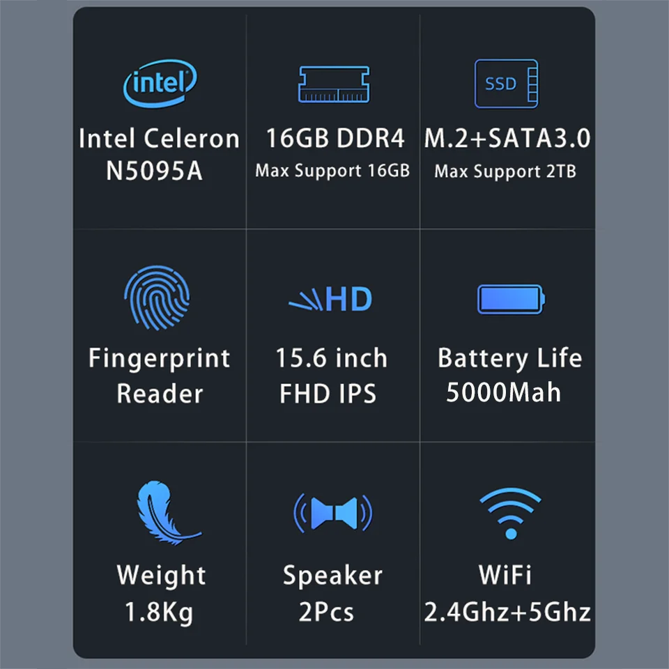 Основная информация | Бренд: Fedemer Модель: 156-5095-16G ОС: WIN10 /WIN11 Процессор: процессор Intel Celeron N5095A Ядро: 4 ядра 4 потока, 2,0 ГГц-2,9 ГГц Графический Процессор: Intel UHD Graphics 600, 650 МГц |