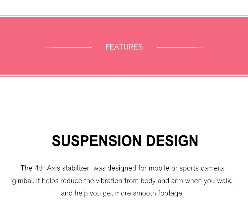 2. Карданный стабилизатор OSMO 4th Axis был изготовлен с пружинным амортизатором, увеличивает стабилизатор на 30% и уменьшает взлеты и падения во время ходьбы или пробежки, а также уменьшает вертикальное дрожание.