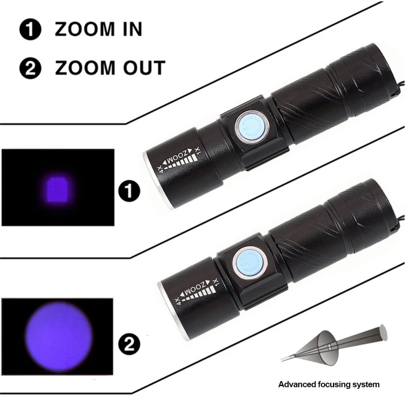 Акция! 395Nm УФ-светильник, светильник для вспышки, черный светильник, USB Перезаряжаемый светодиодный светильник для вспышки, водонепроницаемый инспекционный фонарь для мочи, лампа