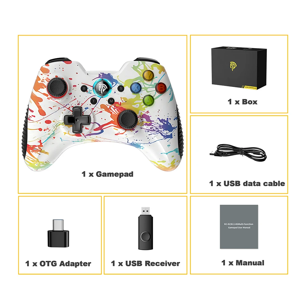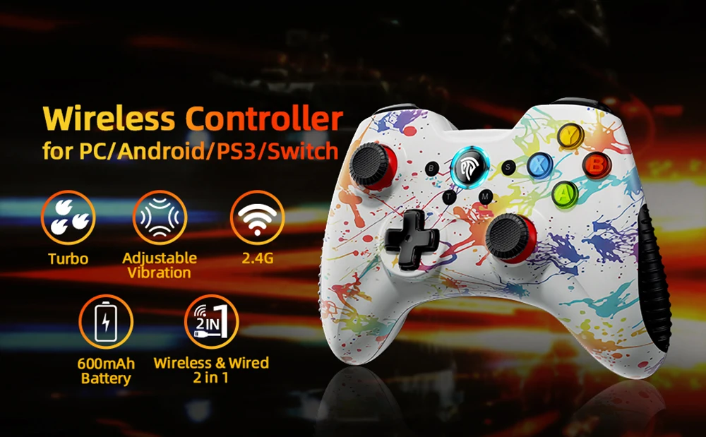 Беспроводной геймпад пк контроллер совместим с ПК с ОС Windows 7/8/10/11, ноутбук, пара, Android TV Box, Android Smart TV, Android телефонов и планшетных ПК, PS3