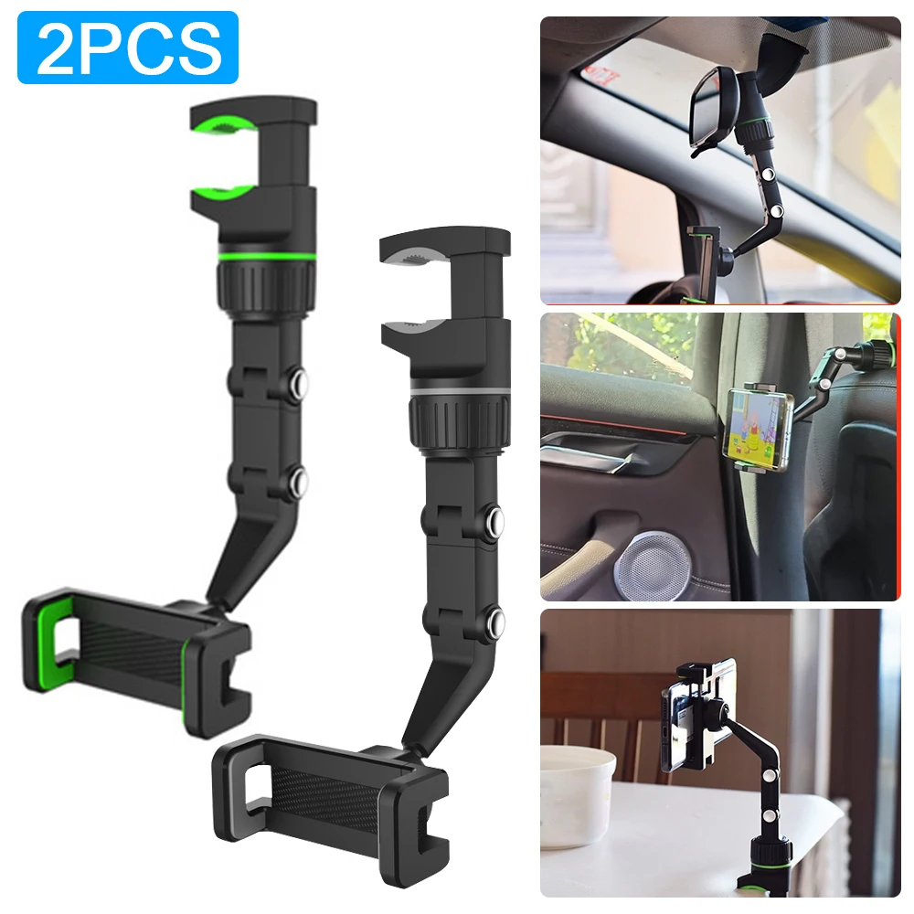 ✿【 360 градусов ROTATION】 : Автомобильные Держатели для телефона с поворотной головкой на 360 градусов обеспечивают лучший угол обзора, чтобы обеспечить безопасное вождение, вы можете разместить свой телефон в любом направлении.✿【EASY OPERATION】 : Автомобильный держатель телефона оснащен рычагом автоматической регулировки, который прост в установке, телескопический зажим расположен в зеркале заднего вида над сидением водителя в автомобиле.