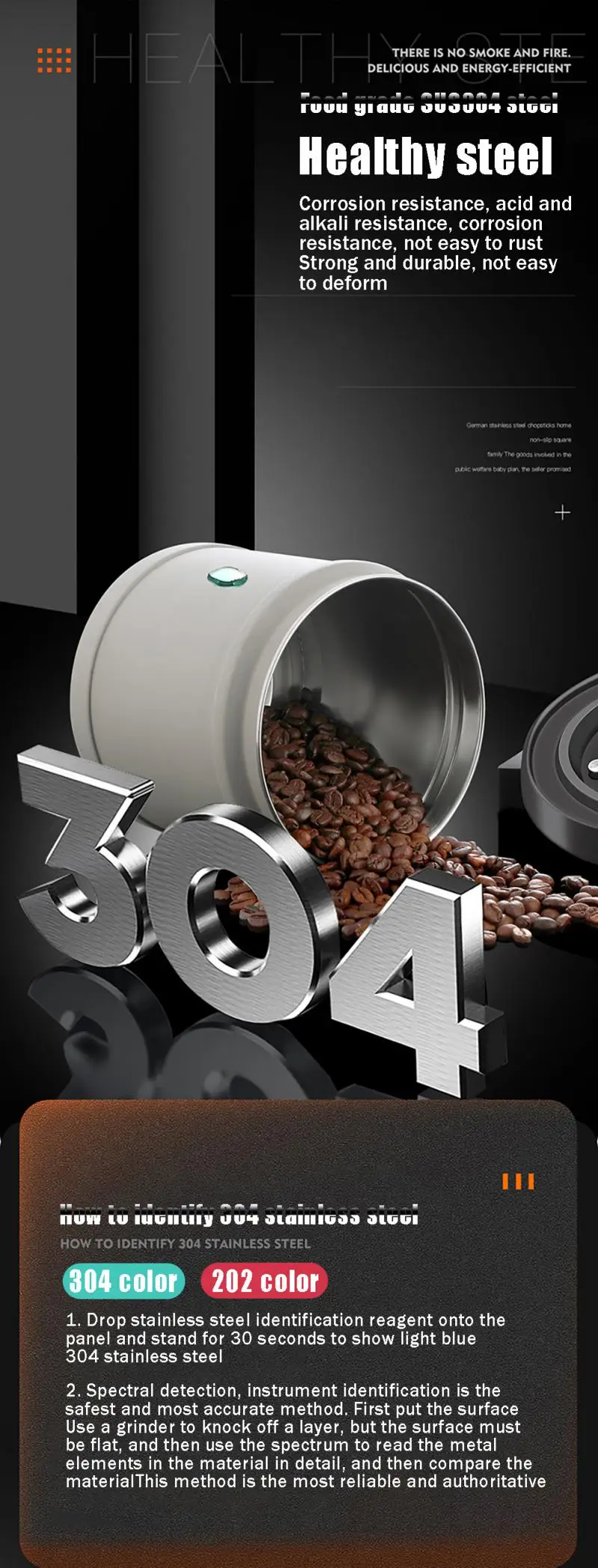 Пищевая сталь SUS304, коррозионная стойкость, стойкость к кислотам и щелочам, коррозионная стойкость, не легко ржавеет, прочный, не легко деформируется