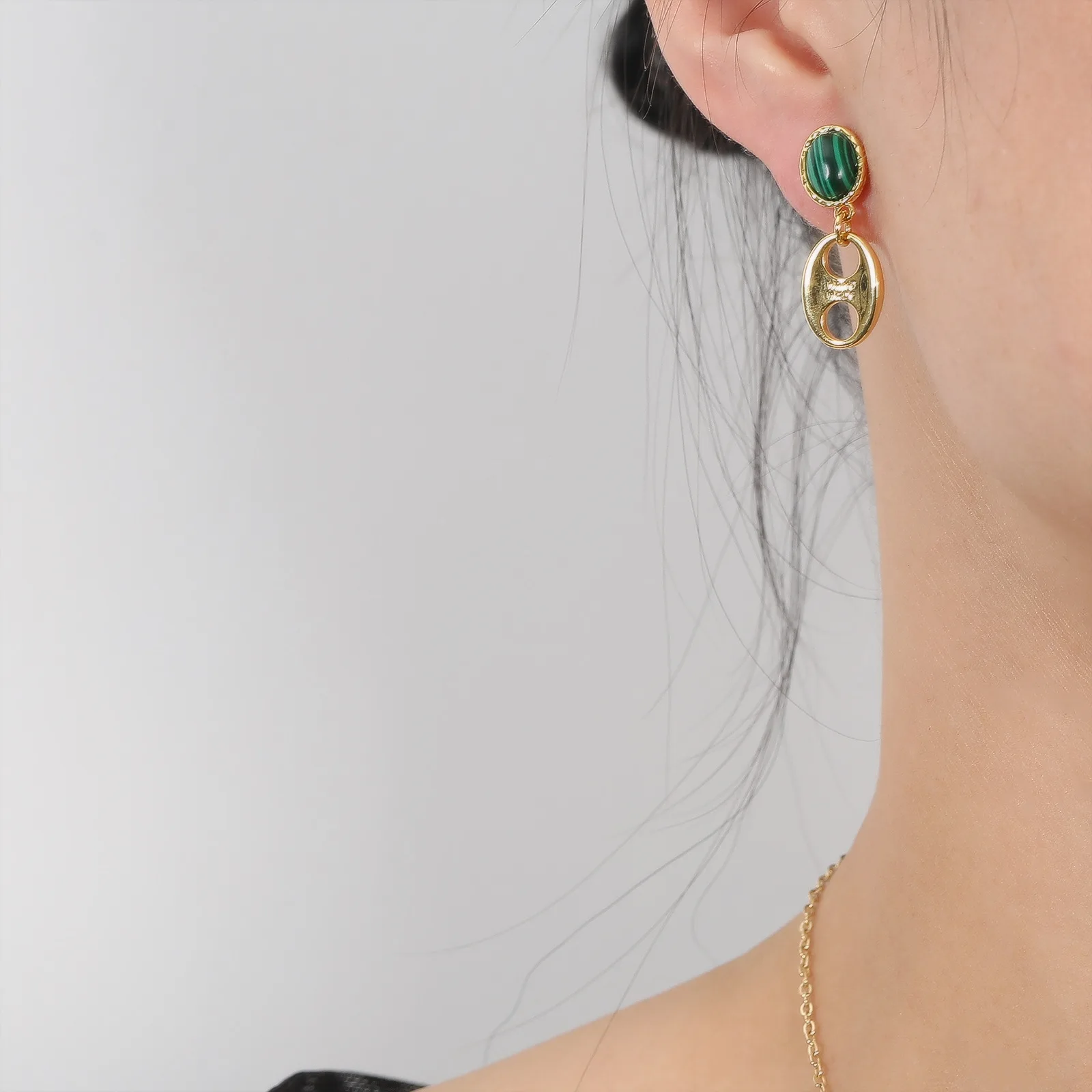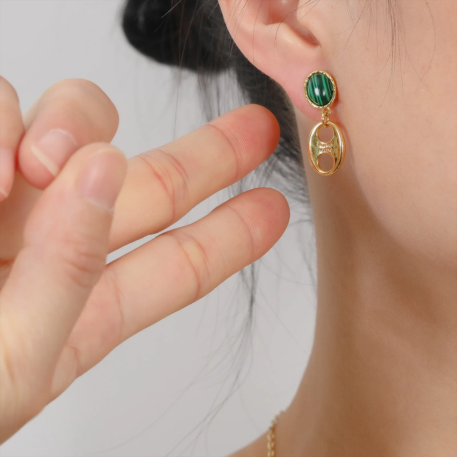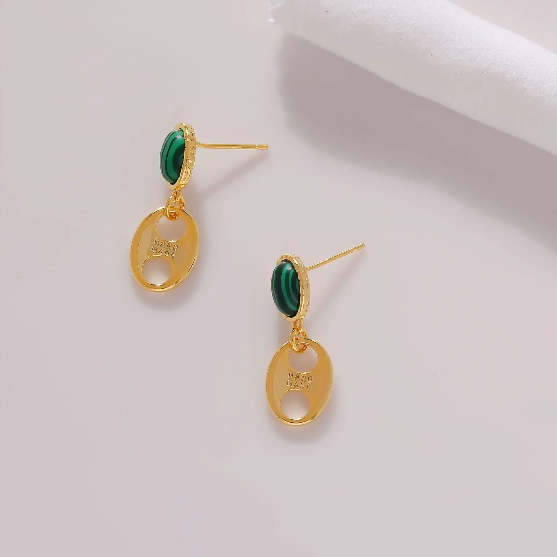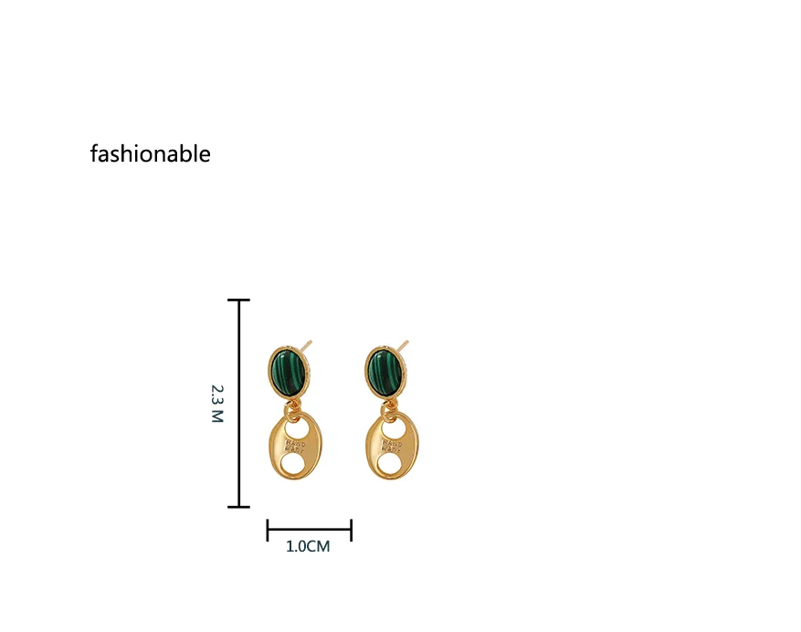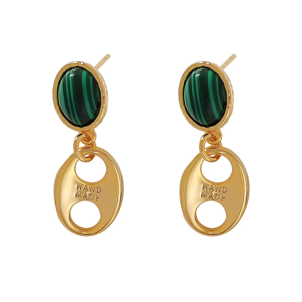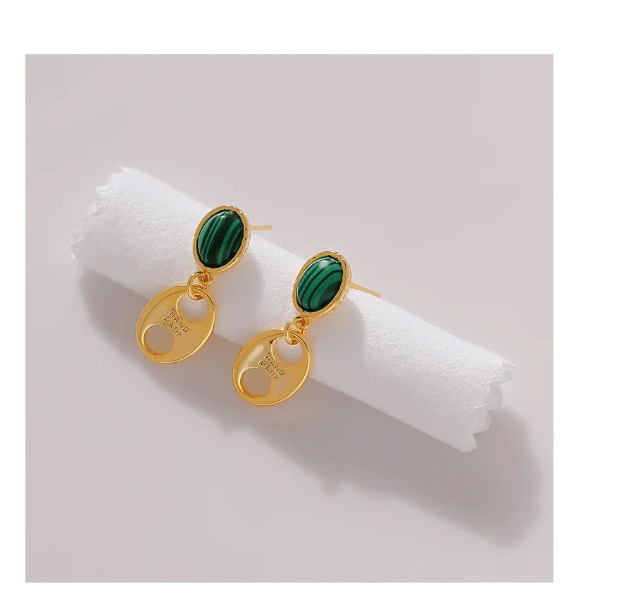 Винтажный дизайн из Гонконга, синтетический Малахитовый камень с минималистичными металлическими серьгами, 18 К, золотое покрытие, серебро 925 пробы, игла, шпилька для женщин