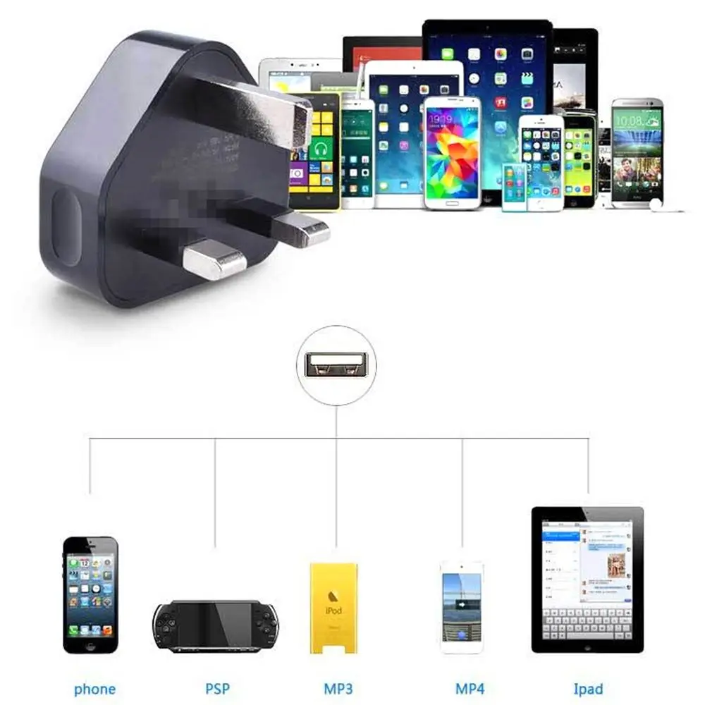 1-Порты и разъёмы USB Wall Зарядное устройство Интеллектуальное интегрированное IC решение с защитой Вход: 100-240 в 50 ~ 60 Гц Макс 0.15A Выход: 5 В постоянного тока 1A Цвет: белый/черный 3 Pin штепсельная вилка британского стандарта Посылка: Зарядное устройство USB