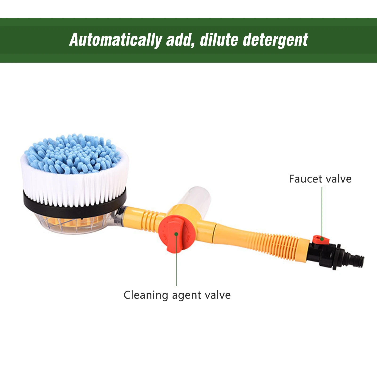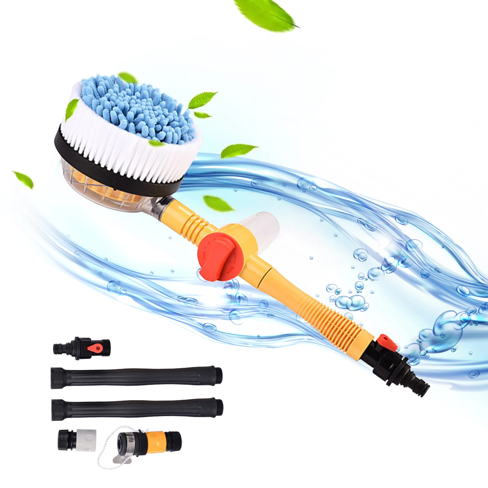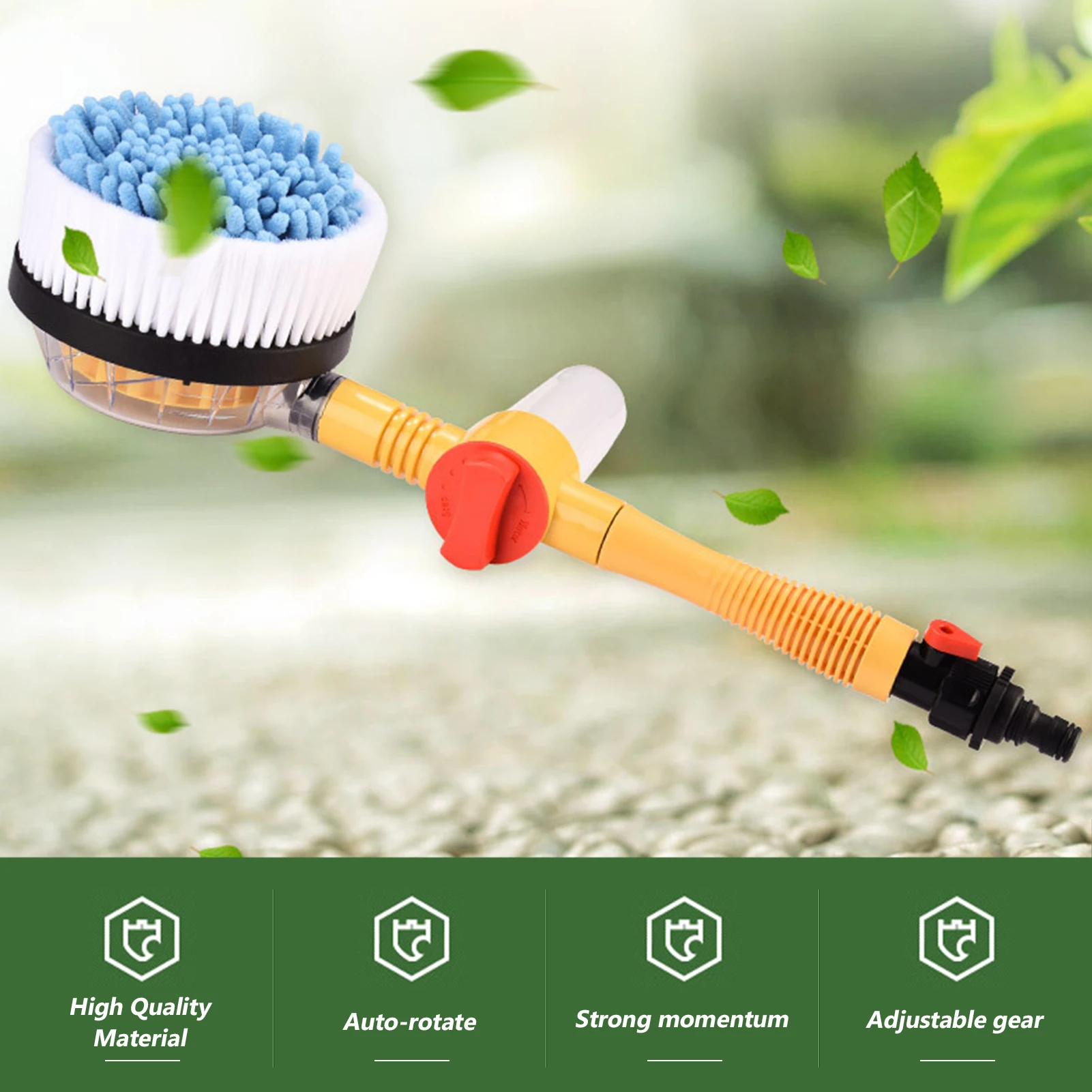 Описание:Нет необходимости в электричестве. Щетка для мытья автомобиля вращается при помощи воды.