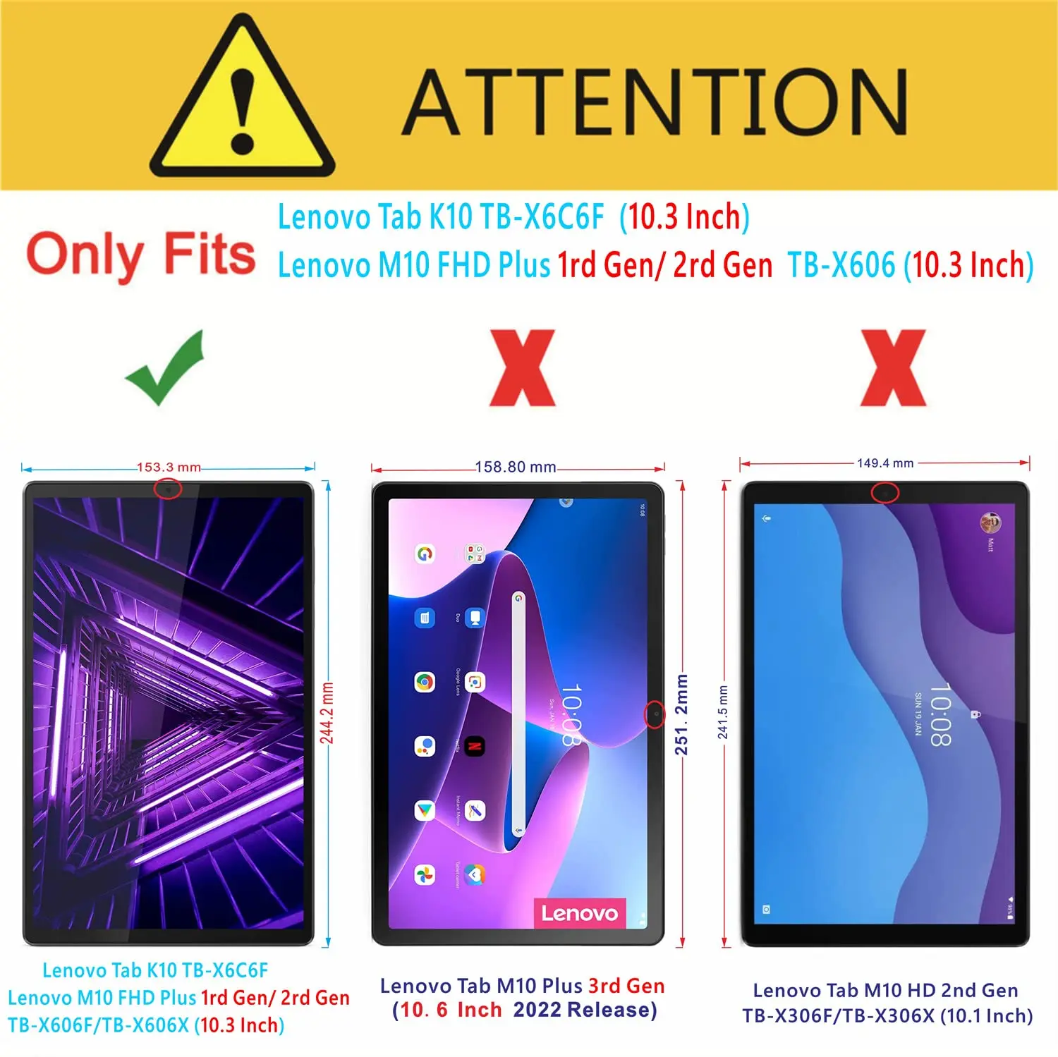 [Совместимость]: Lenovo Смарт Tab M10 FHD Плюс/Lenovo YOGA Tab M10 FHD Плюс/TB-X606/ Lenovo YOGA Tab K10 TB-X6C6F/ (10,3 дюймов); [Не для Lenovo Tab M10 Plus 3rd Gen 10,6 дюймов].