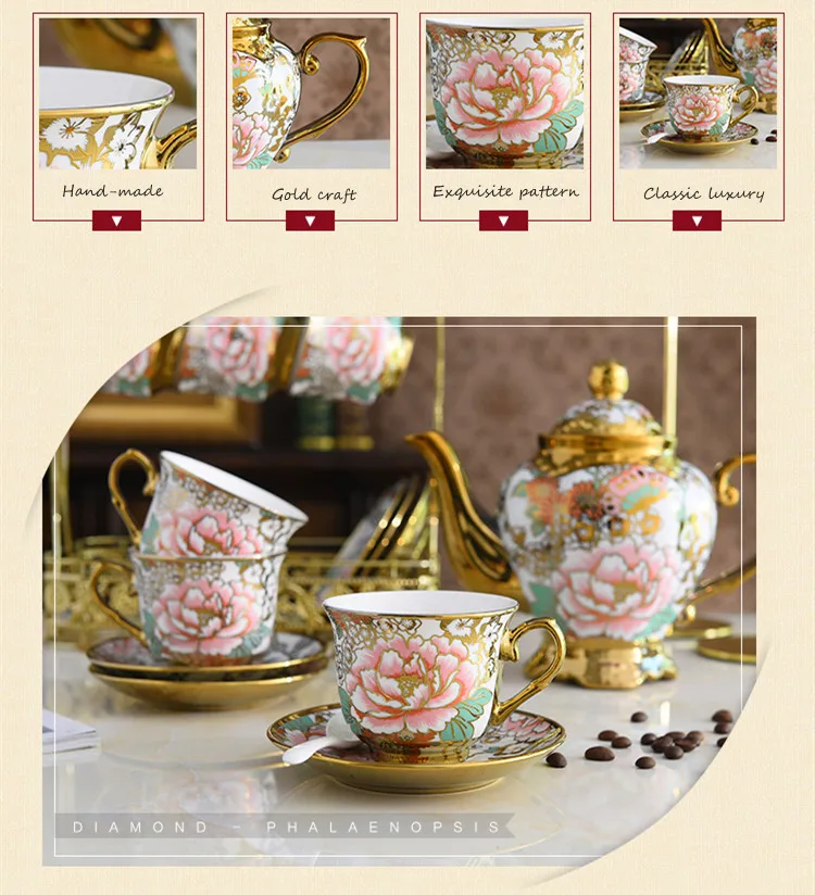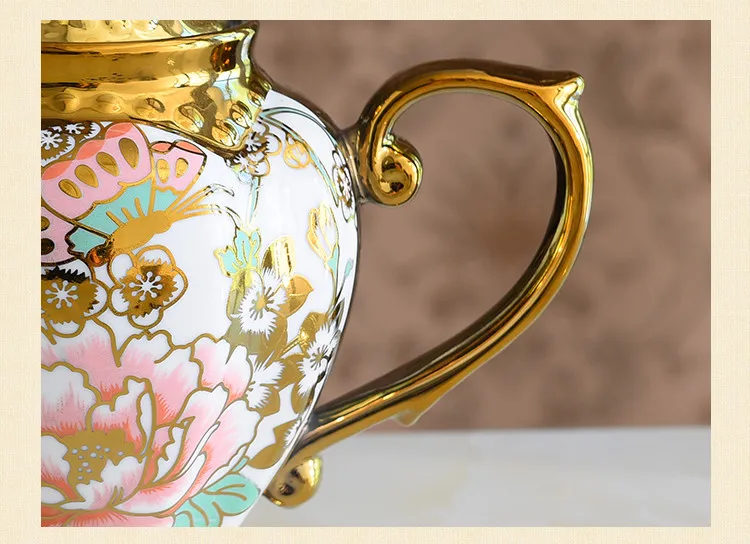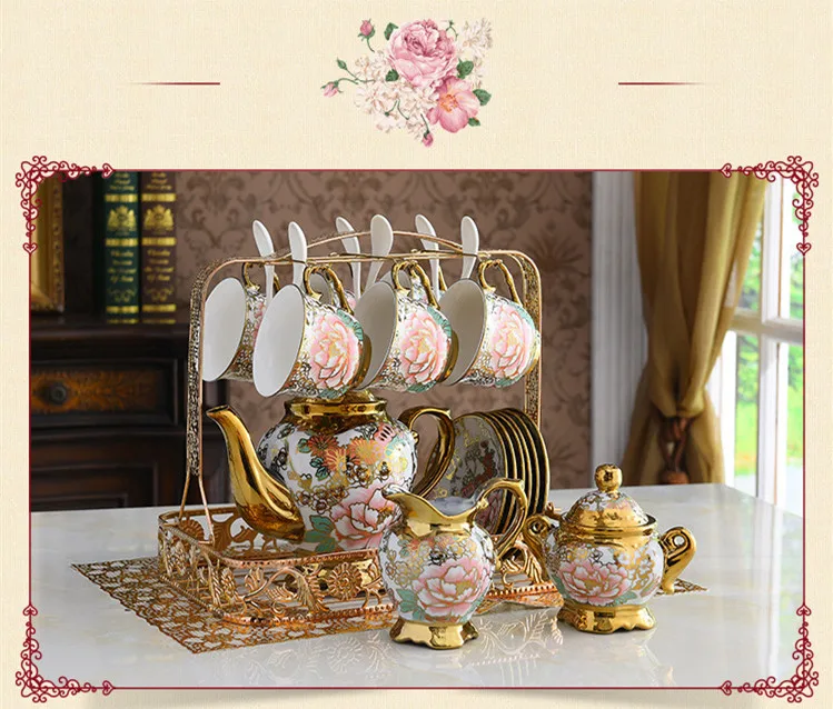 《 Посылка 》: включает кофейник * 1, кронштейн * 1, чашка * 6, блюдце * 6, ложка * 6, сахарница * 1, молочный горшок * 1, нескользящий коврик * 1.