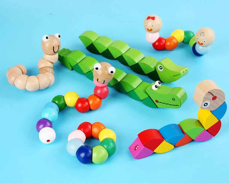 Отзывы о 1 шт. разноцветная деревянная гусеница витая нематодная игрушка Детская