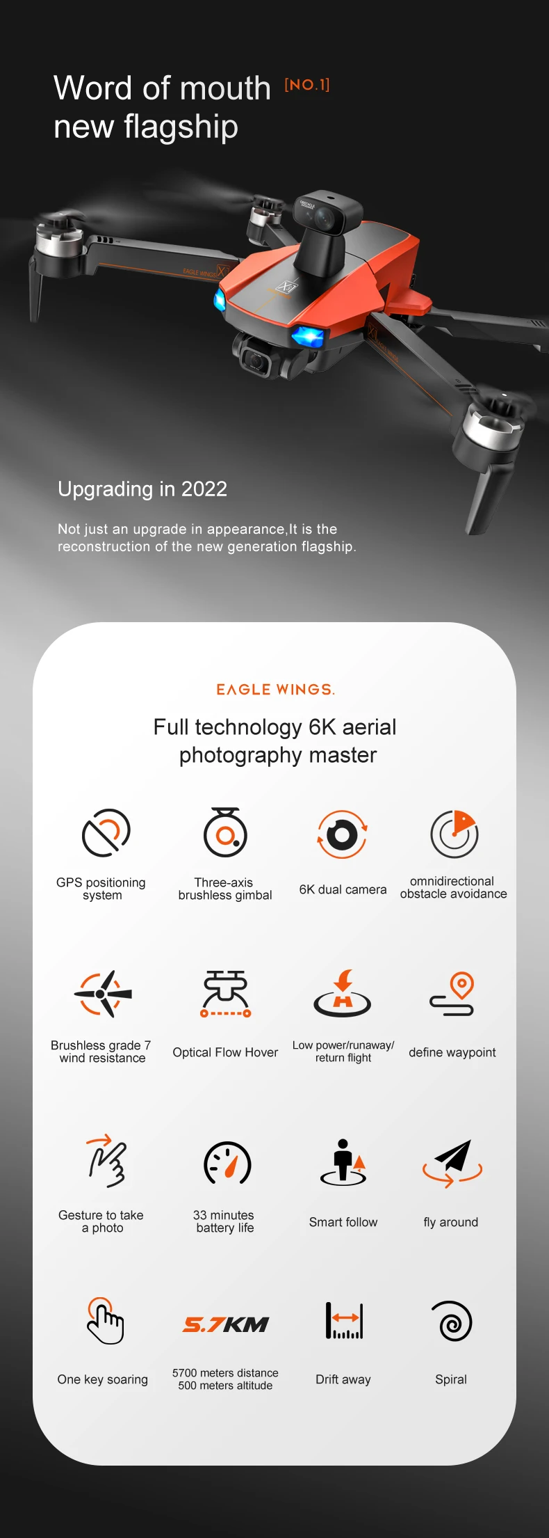 1. С безголовым режимом полета; 2. Интеллектуальное возвращение домой (3 режима); 3. С режимом циклического полета; 4. С умным режимом следования; 5. С режимом полета (трек); 6. Он имеет постепенное расстояние полета; 7. Один ключ к небу; 8. Со спиральным восходящим режимом; 9. С постоянной скоростью круизного режима; 10. Двойное позиционирование (позиционирование GPS + оптическое позиционирование потока); 11. Трехосевая бесщеточная ptz-камера, съемка во всех направлениях;Функция