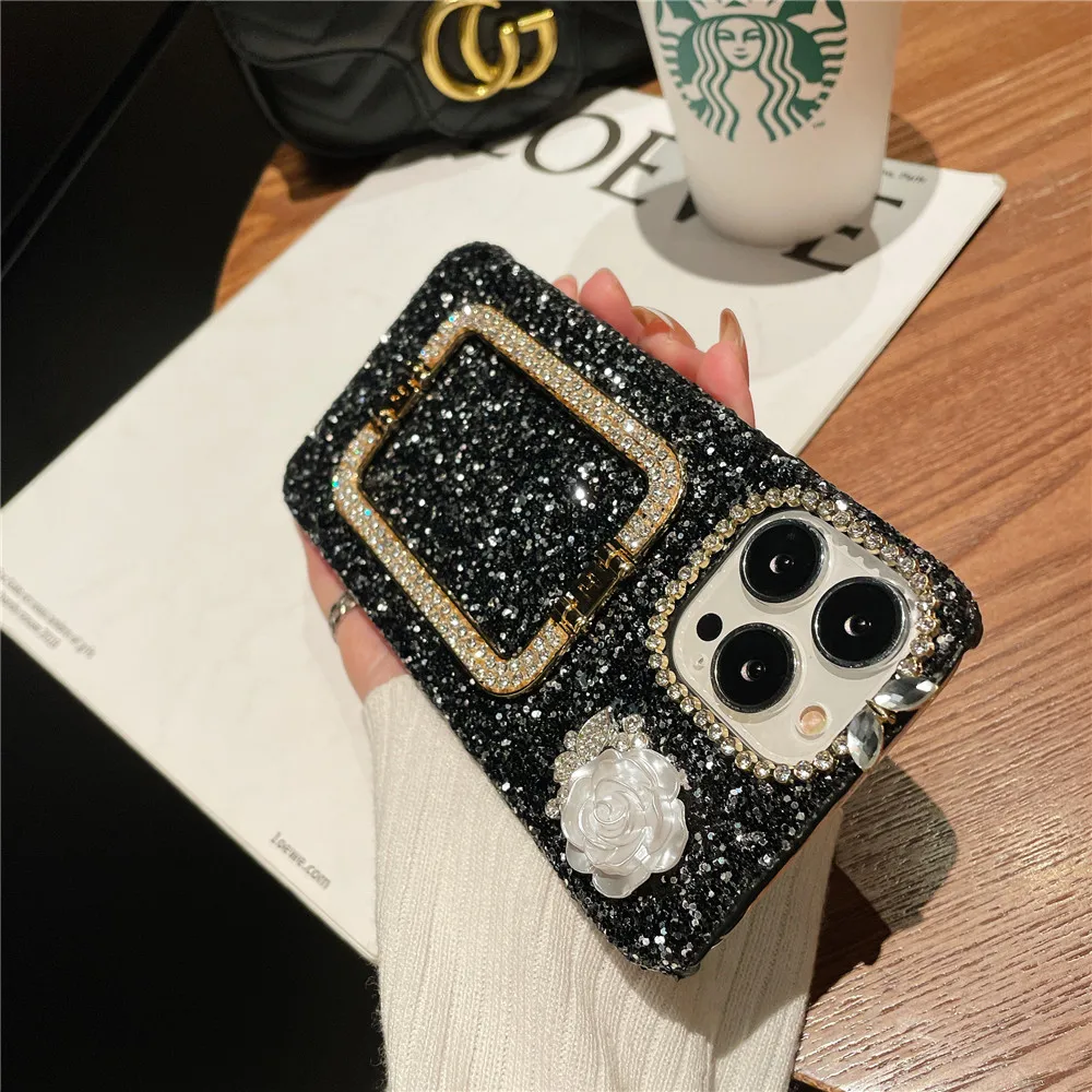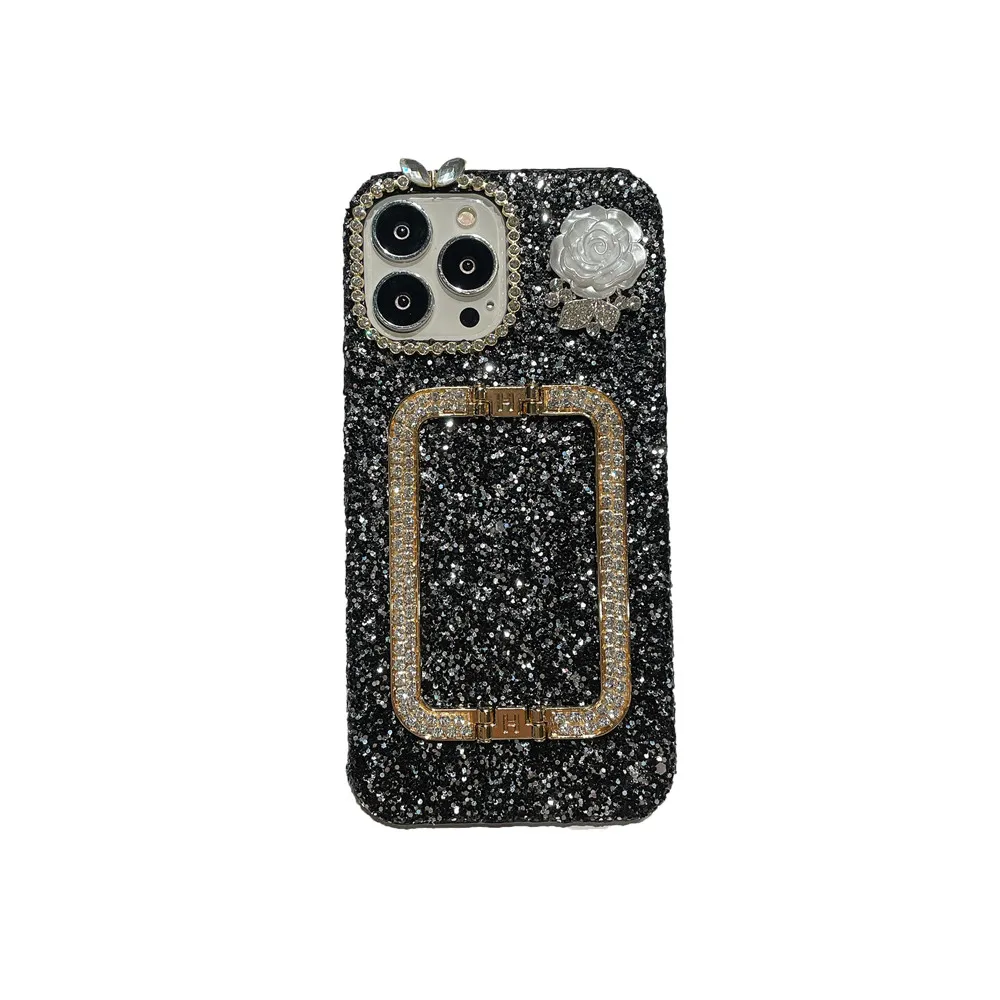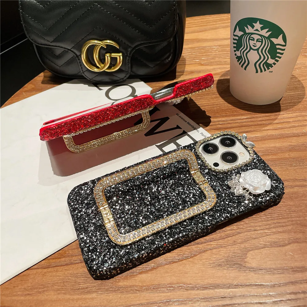 2. Блестящий жесткий чехол + жесткий чехол с квадратным держателем со стразами