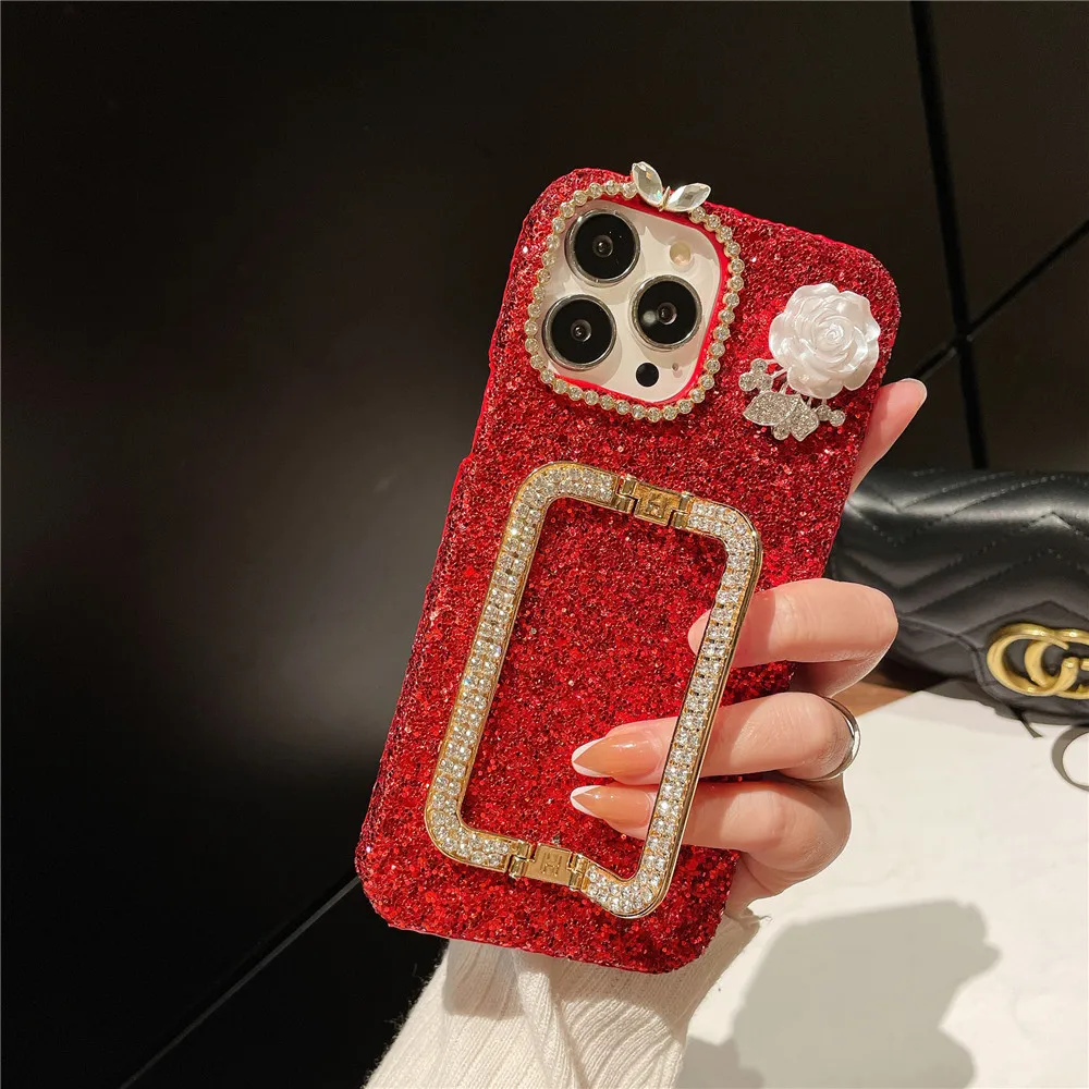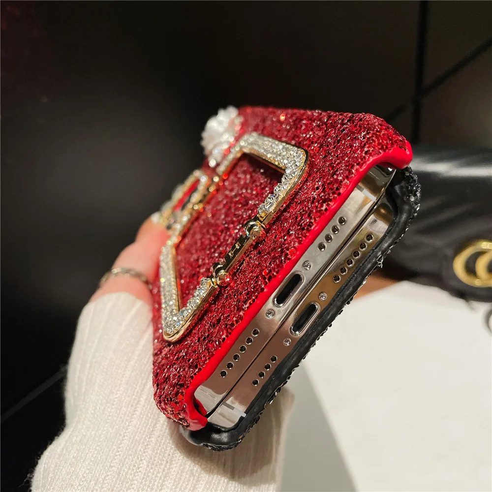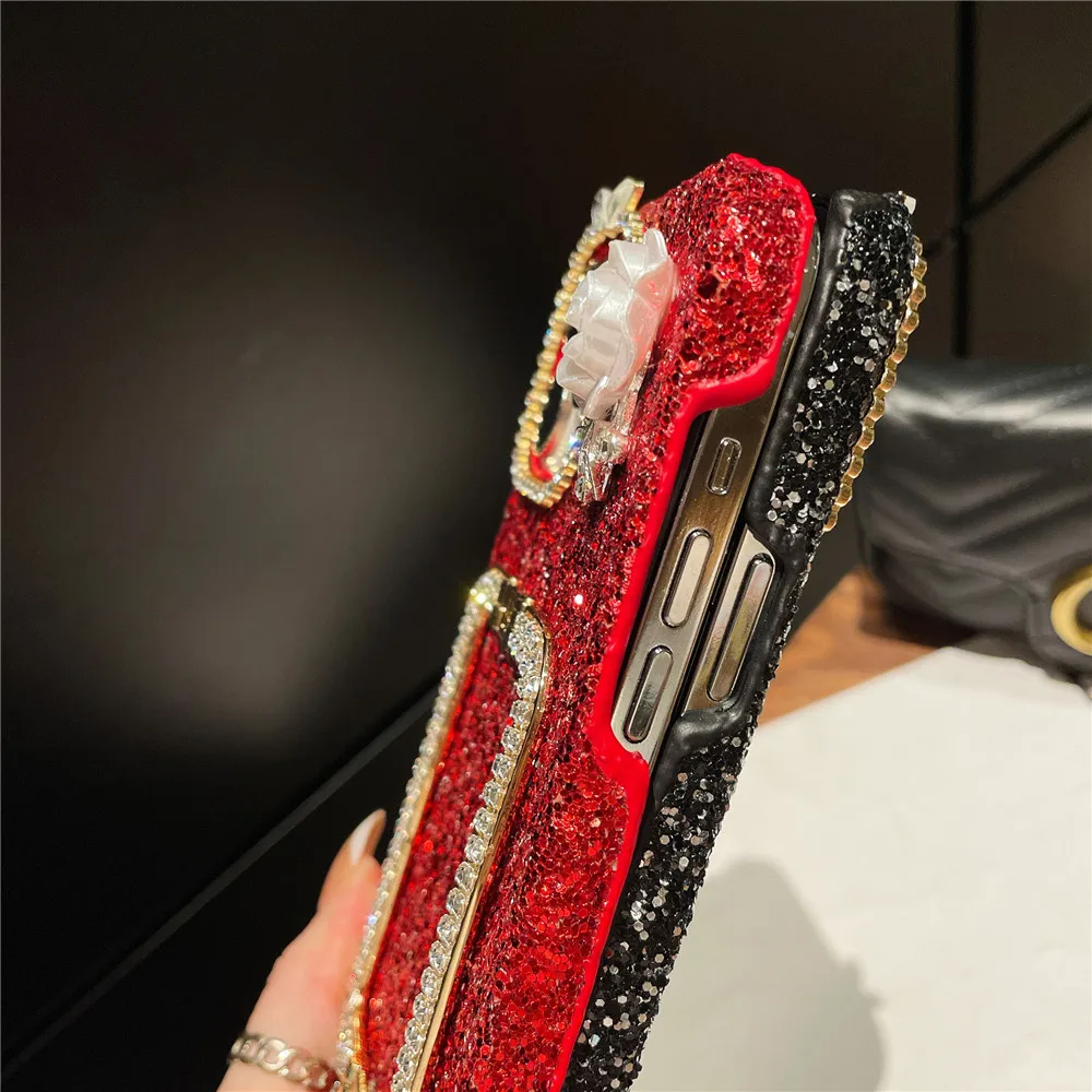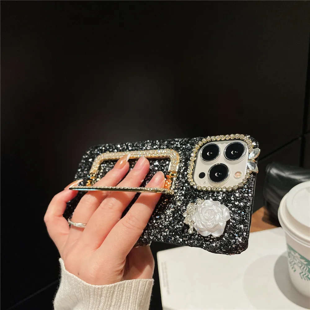 2. Блестящий жесткий чехол + жесткий чехол с квадратным держателем со стразами