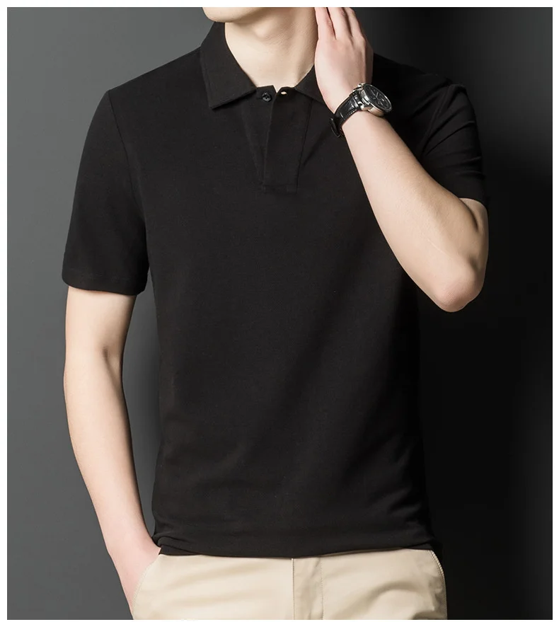 Отзывы о Рубашка-поло мужская на одной пуговице с V-образным вырезом и отложным воротником